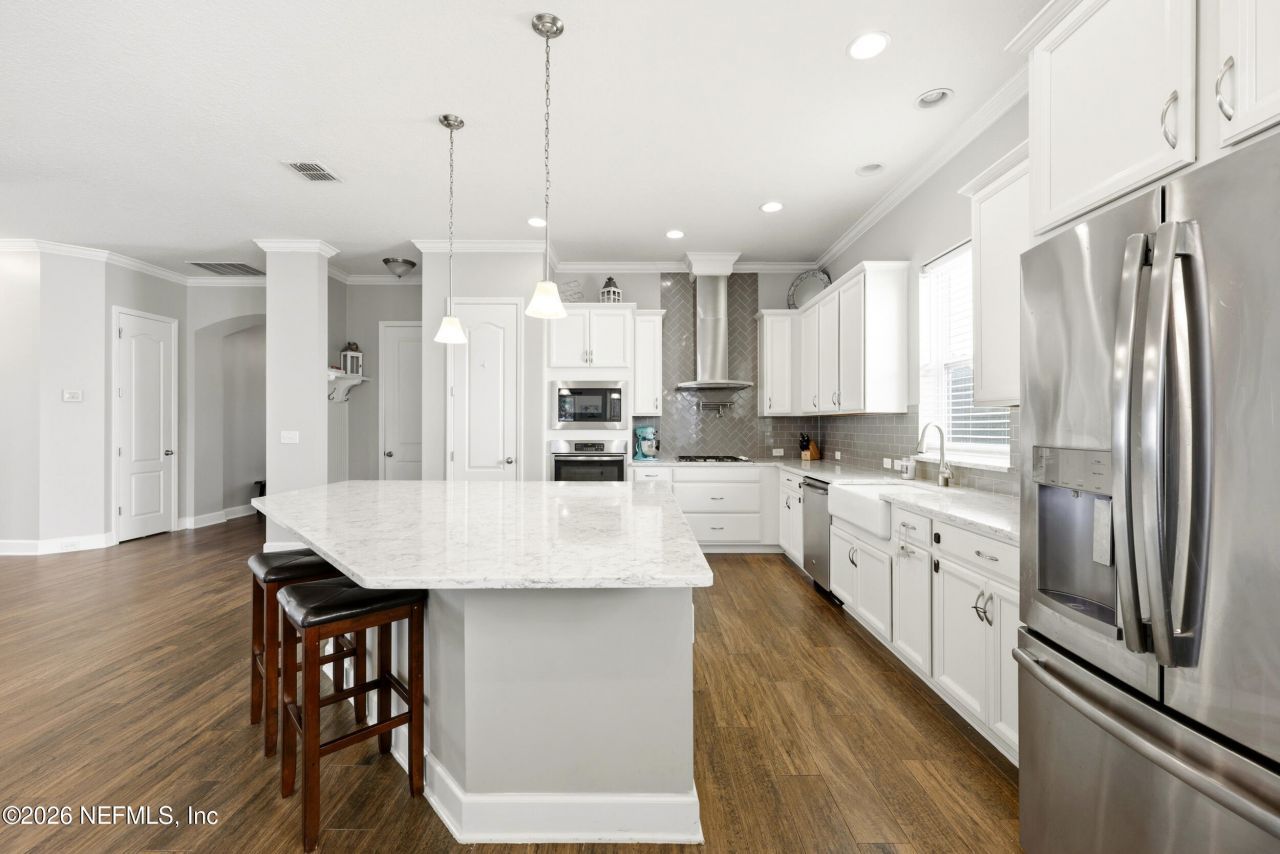 Just listed! Beautifully upgraded & meticulously maintained 3-bedroom, 2-bath home with a private office in the highly desirable Shearwater neighborhood! This home delivers exceptional value, location, and Florida lifestyle living. From the wide paver driveway and charming front porch to the peaceful setting, this home checks every box for today's buyers relocating to Northeast Florida.Inside, the open-concept design is enhanced by wood-look tile flooring, elegant crown molding, upgraded baseboards, tray and coffered ceilings, designer lighting, and abundant natural light throughout. The finishes feel timeless, polished, and move-in ready. The chef-inspired kitchen anchors the home with a large quartz island, white cabinetry with crown molding, farmhouse sink, stylish tile backsplash, and cooktop with vented hood, making it ideal for entertaining and everyday living. The primary suite is a true retreat, featuring a coffered ceiling, spacious walk-in closet, and spa-like en suite bath with dual vanities and an oversized tiled shower. Bonus spaces include a private office with French doors, a dining area with tray ceiling and lanai access, and spacious secondary bedrooms.Step outside to the covered paver lanai and fully fenced backyard, perfect for outdoor dining, relaxing, or weekend BBQs your own private Florida oasis. Located in Shearwater, residents enjoy resort-style amenities including pools, kayak slips, miles of scenic nature trails, tennis courts, and a dog park. Zoned for top-rated St. Johns County schools and minutes from Trout Creek Academy, shopping, dining, beaches, and historic St. Augustine this is Florida living at its best.