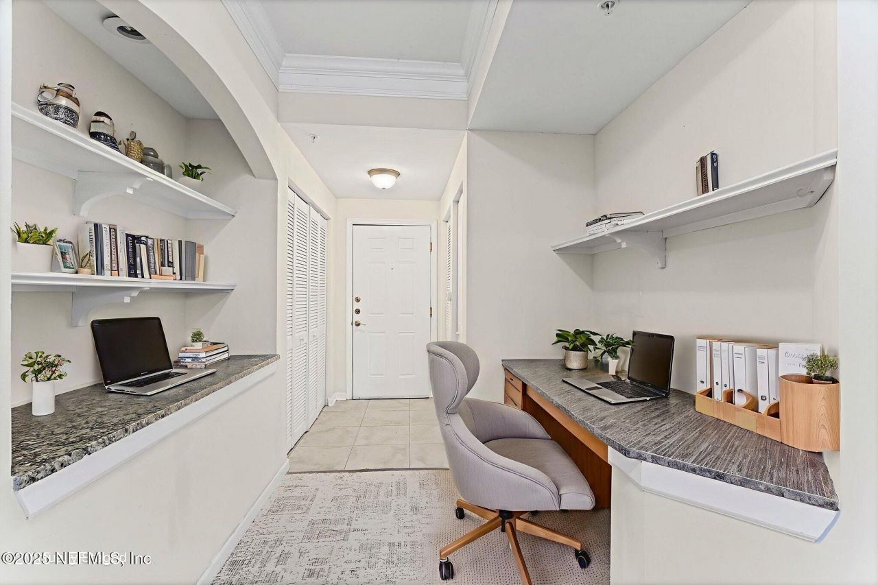 Desirable corner unit offers lots of windows. New FLOORING & interior paint! Seller will credit buyer for the $10,000 assessment due in Oct 2026 at closing. Desirable corner unit offers a lavish lifestyle living w/ resort style club house, pool, workout center, business center, & MORE! Located in the heart of Town Center! Plenty of restaurants, apparel stores, sporting good stores, furniture stores, grocery stores, health food stores, convenient stores, you name it, it's there!! Minutes to The University of North Florida. A short drive to Jacksonville Beaches & BEAUTIFUL downtown Jacksonville on the St Johns River. Spacious 2 bedrooms, both offering nice bathrooms & large walk in closet. This unit comes w/ 2 garage parking spaces conveniently located in the 1st & 2nd parking spots in the garage. The seller bought the unit brand new & has rented it for a high rent return each year, great investment. AC replaced in 2024. See condo docs under docs tab