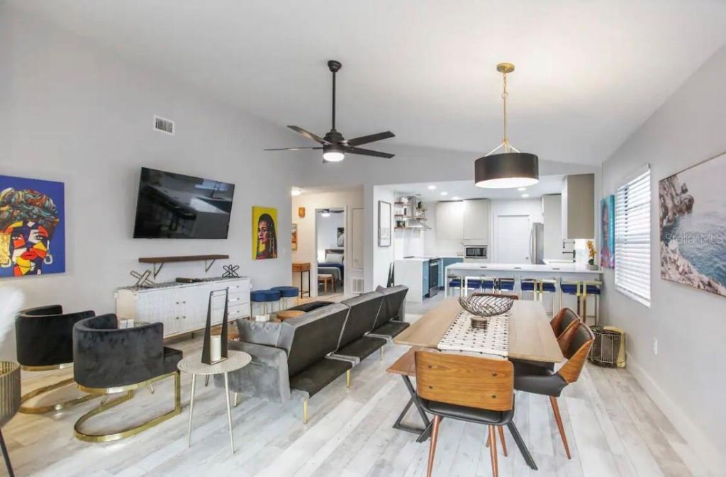 THIS GORGEOUS 3 BED/2BATHS MID-CENTURY MODERN ARCHITECTURALLY DESIGNED SINGLE FAMILY HOME IS NEWLY REMODELED ANDNESTLED IN EAST ORLANDO SUNCREST COMMUNITY. THIS ELEGANT HOME FEATURES 1,276 SQ. FT. OF LIVING SPACE, A MODERN SWEDISHKITCHEN FEATURING CRYSTAL COUNTER TOPS, WITH FUNCTIONAL DRAWERS, BAR CABINET WITH 27 BOTTLE WINE COOLER, PORCELAIN TILE FLOORS. STAINLESS STEEL APPLIANCES INCLUDE RANGE, RANGE HOOD, REFRIGERATOR AND MICROWAVE/CONVECTION OVEN. BEAMED CEILING THAT FLOWS TO THE BEAUTIFUL LAMINANTE WOOD FLOORS. LOVELY DESIGNED PRIMARY AND QUEST BATHROOMS WITH MATTE FIXTURES AND MATTE CEIING FANS IN PRIMARY BEDROOM, LIVING ROOM AND FAMILY ROOM, NEW 40 GALLON HOT WATER HEATER IN THE UTILITY ROOM WITH MOTION SENSORED LIGHT SWITCH , UPDATED PLUMBING, AND UPDATED AC HANDLER, CONDENSER AND NEW AIR DUCTS. WONDERFULLY LANDSCAPED TO GIVE ULTIMATE CURB APPEAL. THIS HOME IS 10 MINUTES FROM DOWNTOWN ORLANDO, 15MINUTES TO ORLANDO INTERNATIONAL AIRPORT, 10 MINUTES TO RETAIL SHOPPING AND RESTUARANTS, 15 MINUTES TO VALENCIA COLLEGE, 15 MINUTES TO UCF AND 30 MINUTES TO DISNEY WORLD.