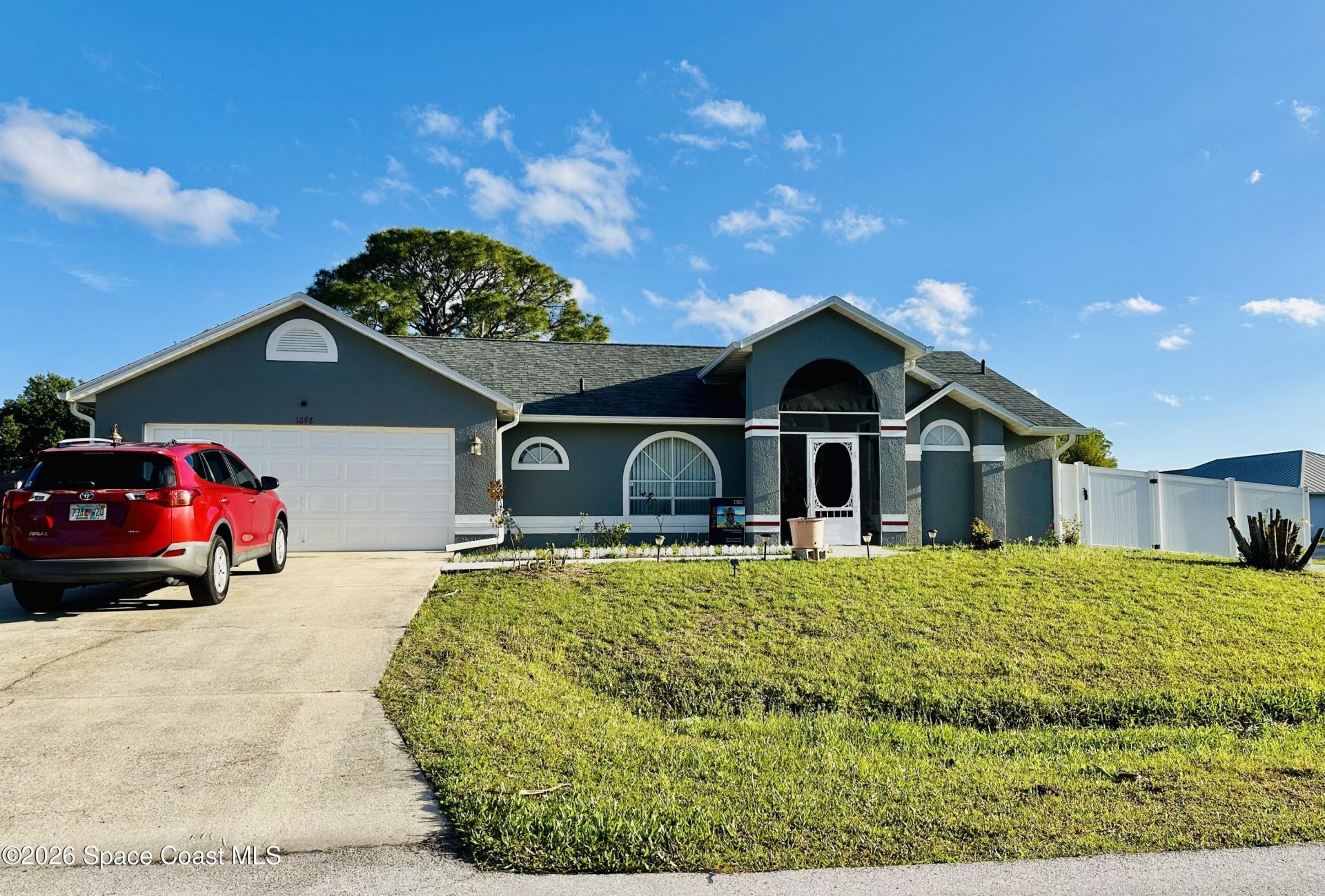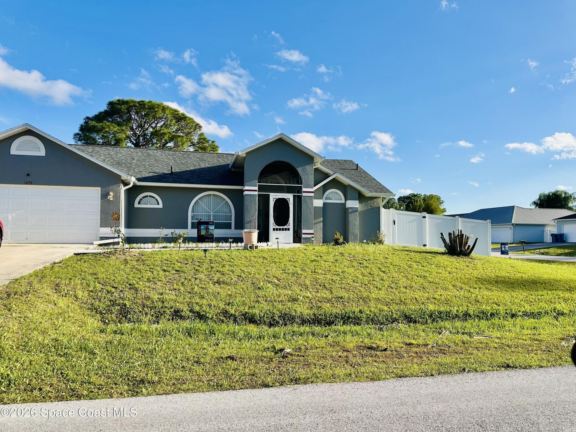 Welcome to 1098 Falconer Street, Northwest Palm Bay, FL 32907 -- a beautifully maintained corner-lot home built in 1993, offering 1,868 sq ft of comfortable living space. This three-bedroom, two-bath residence features a two-car garage, a formal living room, and a bright family room with skylights. A dedicated dining area and a spacious kitchen with stainless steel appliances and a breakfast bar make entertaining a breeze. The master suite is a true retreat, complete with a private garden tub, double-sink vanity, and a separate toilet area. A screen-in porch and an above-ground pool add a resort-style touch for summer fun, and peace of mind comes with a brand-new roof installed in November 2024.The location is equally impressive -- within walking distance of parks and elementary schools, and just minutes from the Hammock Landing shopping center. Top-rated Brevard County schools are nearby, and the beach is just a short drive away.