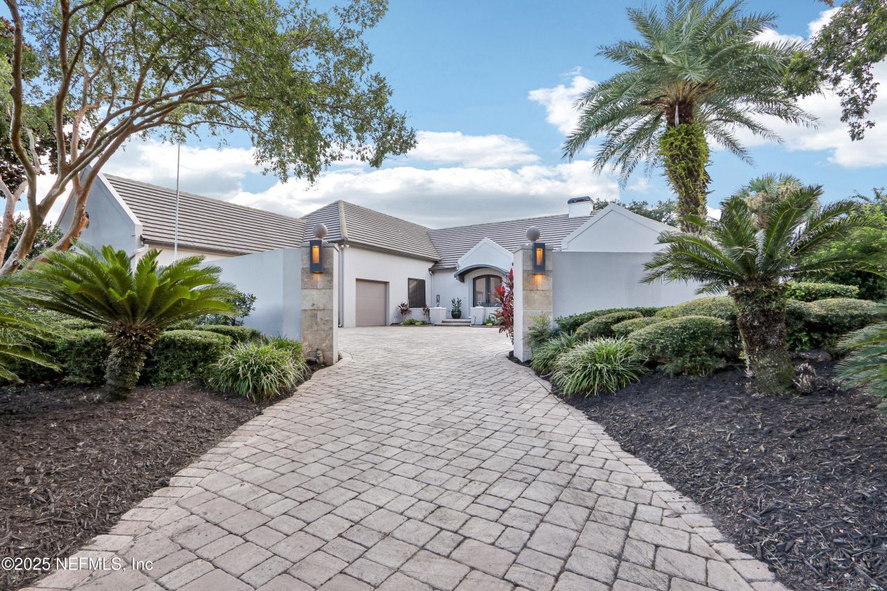 Behind The Plantation's gates, a concrete-block residence by Thompson & Rainville delivers resort-style living on a premier water-to-golf homesite ~ with 4,171 sq ft with 4 bedrooms, 4 baths, and a flexible guest suite/office with private entry. Walls of glass showcase long lagoon and fairway vistas that flow to a private saltwater pool and spa, now enhanced with brand-new pool cage and updated equipment for easy, turnkey enjoyment. Inside, soaring ceilings and custom finishes anchor elegant living and dining spaces. The chef's kitchen features Sub-Zero and KitchenAid appliances; the main-level luxe primary retreat offers a spa bath, sitting area, and screened lanai-perfect for quiet mornings before a beach day or tee time. A climate-controlled 3-plus-car garage with epoxy flooring. Brand new pool pool cage, equipment, electrical service and much more done by owners to keep in tip top condition! Lender incentives available up to $7500, ask listing agent for details. Life at The Plantation is truly all-inclusive: homeownership includes membership to the private beach club, championship golf, tennis, pickleball, croquet, fitness, clubhouse dining, and 24/7 security minutes to TPC Sawgrass and top-ranked St. Johns County schools.