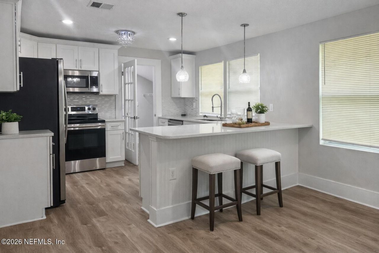 Welcome home to 1219 E 10th St in Jacksonville. This beautifully renovated home is truly move-in ready and designed for easy living. Enjoy peace of mind with a brand new kitchen featuring new cabinets, updated flooring throughout, and fully renovated bathrooms. Every detail has been thoughtfully updated so you can focus on settling in, not projects.The fully fenced front and back yard offer privacy, space for pets, outdoor gatherings, or simply relaxing at the end of the day. Storage sheds provide extra room for tools, bikes, or hobbies, keeping the home clutter free. Conveniently located with quick access to downtown, major roads, dining, and shopping, this home offers comfort, functionality, and value all in one package. A perfect opportunity to own a modernized, low maintenance home. Schedule your showing today!