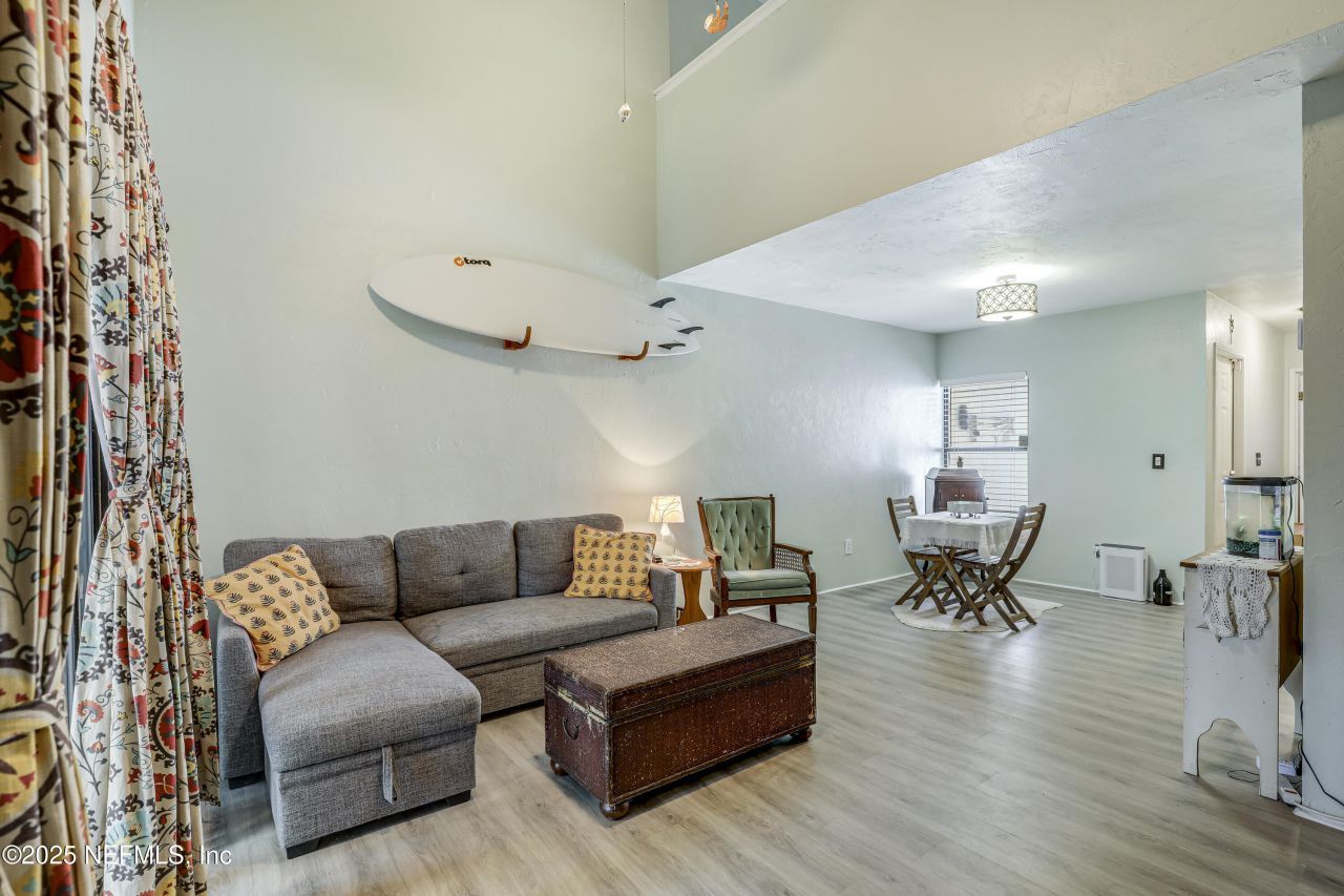 **END UNIT**CLOSE TO THE BEACH** **Inquire for Buyer Credits**Welcome home to this updated corner unit! This delightful home has 2 beds/2baths, plus a FLEX SPACE within the master suite offering opportunity for a huge walk-in closet, a private home office, or even your own yoga studio! Enjoy a thoughtfully designed SPLIT BEDROOM FLOOR PLAN for privacy. Outside, a gated walkway leads to the front door. The FENCED BACKYARD provides a perfect spot for relaxation and entertaining. Unwind in the Florida room, where you can admire the majestic southern oak trees that grace the backyard. Inside, you'll find a laundry room with shelving, and a stylish kitchen boasting an elegant tray ceiling. The 1st bedroom and living room showcase VAULTED CEILINGS. The location is truly unbeatable, just mins from Kathryn Abbey Hanna Park, the beach, and Mayport Naval Station. Don't miss the chance to make this amazing property yours!
