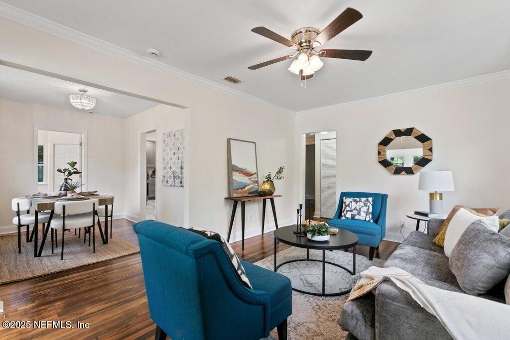 Avondale renovated cottage situated on a corner lot with mature crepe myrtle trees & new landscape. Updates include new Roof, AC, Hot Water Heater, all new appliances & cabinetry. Original hardwood floors refinished, new laminate wood flooring and ceramic tile & new bath fixtures. Glassed front entry foyer, separate dining room, living room, 3 nice sized bedrooms with closets. Inside laundry suitable for stackable washer/dryer. 12 x 12 rear deck & nice large storage shed included in back yard. Covered single carport with closed in outside storage closet. Lots of parking space out front & partially fenced back yard. Minutes to Avondale shopping, restaurants, entertainment & parks. NAS Jax just 6.5 miles away. .