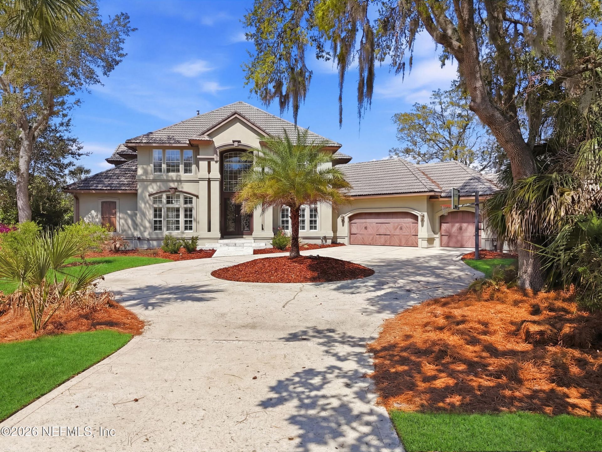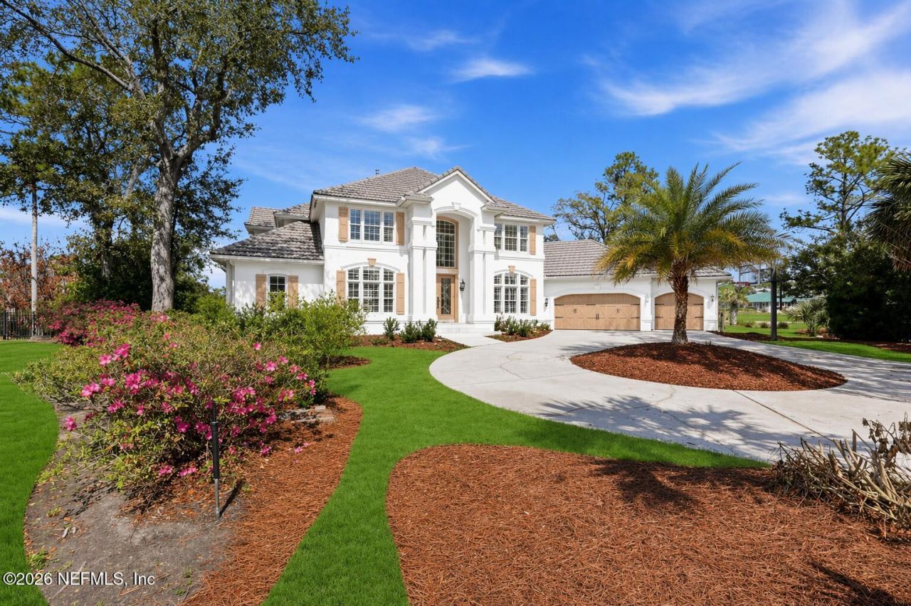 Undeniably one of the most coveted homesites in Marsh Landing Country Club, this property offers the rare combination of Intracoastal access and breathtaking panoramic golf course views and is just steps from the club! The moment you step in the home you are greeted with a grand staircase with a wall of windows overlooking the pool and intracoastal. The open layout creates a seamless flow for living and entertaining. This spacious home spans 4,457 sq. ft. and offers 5 bedrooms, 4.5 bathrooms, and a versatile bonus room, providing flexible spaces for working from home, hosting guests. The heart of the home is an entertainer's chef kitchen and incredible open-concept living space, designed for both everyday comfort and effortless entertaining.The current owner has completed numerous upgrades and renovations, including 3 new HVAC systems, new pool pump and filter, a beautifully renovated bathroom, lvp flooring and a new garage system with epoxy flooring providing modern comfort and convenience. A new barrel roof will also be installed prior to closing! Enjoy beautiful golf course views from the kitchen table while you are sipping your morning coffee or watch golfers drive past on their cart off as you prepare meals at the oversized island. One of the home's most amazing and rare lifestyle opportunities is the deep water access dock for sitting and watching the wild life or dropping your fishing rod off the dock.This home brings the best of waterfront living and outdoor recreation right to your backyard. Marsh Landing is one of the area's most sought-after gated communities. Come experience the golf cart life in this very desirable community that is close to TPC Sawgrass, Sawgrass Village, the beach, shopping and lots of restaurants! Experience the perfect blend of luxury, waterfront lifestyle, golf course living, and modern upgrades in this exceptional Marsh Landing home. See Feature Sheet for list of upgrades.