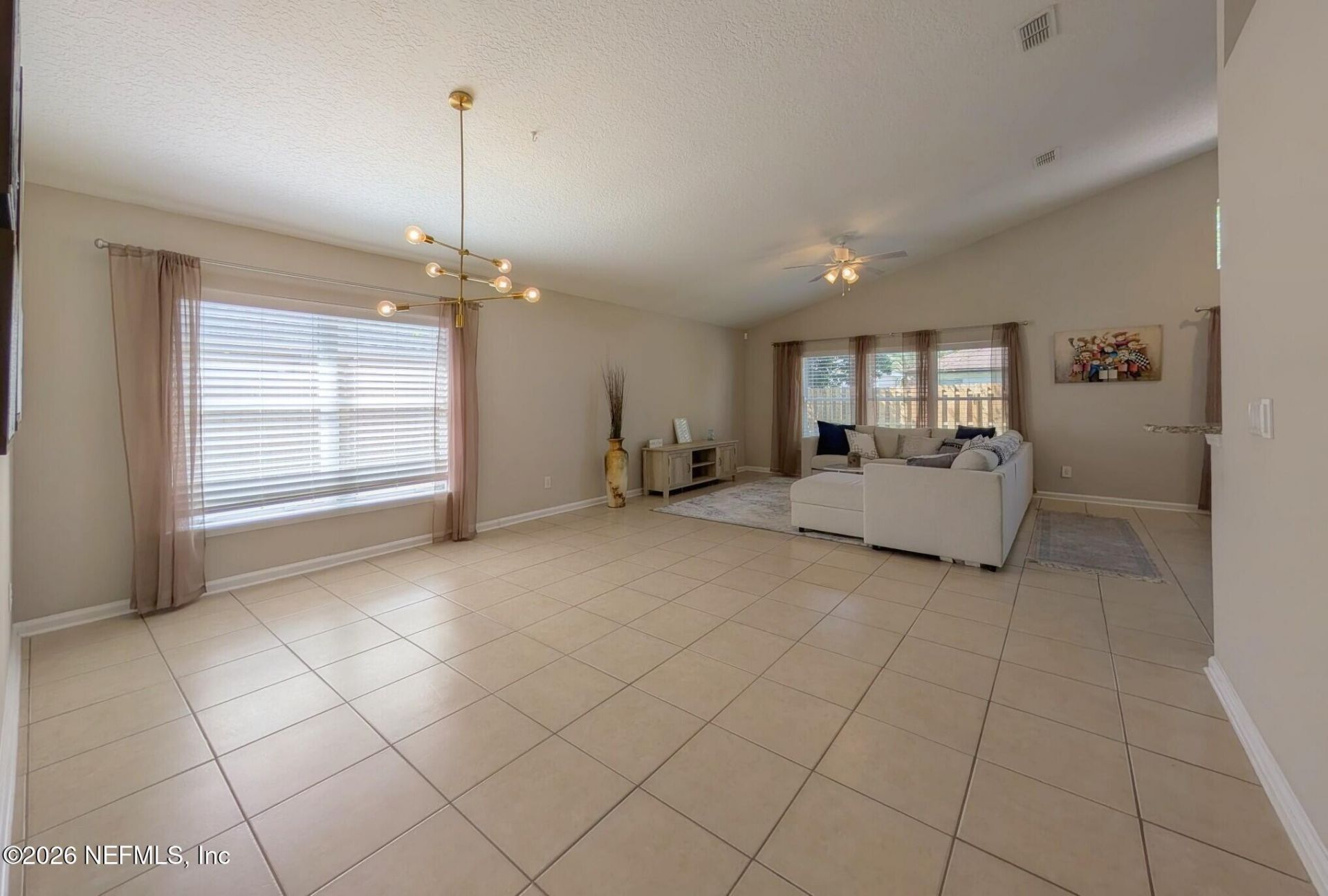 Immaculate 3/2 located on a cul-de-sac in the prestigious John's Creek community. Ride your golf cart to A+ Chets Elementary school at the beginning of the subdivision. This move-in-ready home has an open floor plan with vaulted ceilings and neutral paint throughout, nice large windows, no carpet, and a half moon in the kitchen for a bright and airy feel. Large primary suite with oversized walk-in-closet, double vanity, garden style tub, separate shower as well as a door leading to a private screened in lanai. Split bedroom plan with plank flooring and nicely sized closets. Stainless appliances in kitchen with oak cabinets, granite counter top and attached desk. French doors open to lanai for relaxing and enjoying afternoon breezes. Home is completely fenced for privacy and no through traffic. Community pool, playground and maintenance of common areas included in HOA dues. You won't be disappointed in this move-in-ready home close to Beaches, downtown, Naval Station, JTB and 295