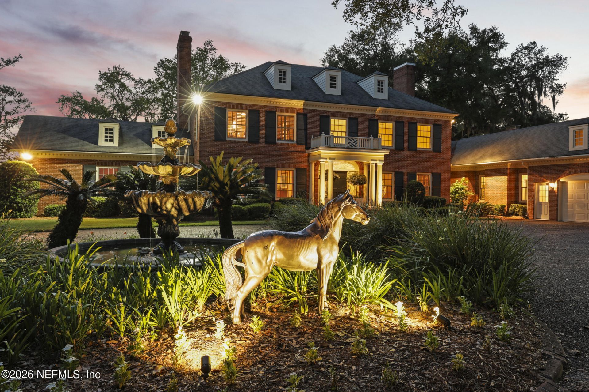 Extraordinary and rare opportunity less than 30 minutes to Downtown Jacksonville. This resort-style, gated equestrian estate spans approximately 8.7 acres in the heart of Mandarin. The 2-story all-brick traditional home is complemented by 3-stall stables, tack barn, and feed room. Enjoy a private tennis/pickleball court with gazebo, screened pool, pool house, and party room with bath. Six garage bays plus workshop, greenhouse, and garden complete the grounds.Inside, the updated residence features stunning hardwood floors throughout both levels, 5 bedroom suites--including a private nanny -guest suite and a library/office & bath.Nearly every room captures breathtaking views of the St. Johns River. A croquet-quality manicured lawn spans over 200' of bulkheaded riverfront. Dock access from the pool house includes a covered boat lift and jet ski lifts.Unmatched privacy and amenities with shopping and dining just minutes away, an exceptional lifestyle property rarely found so close in.