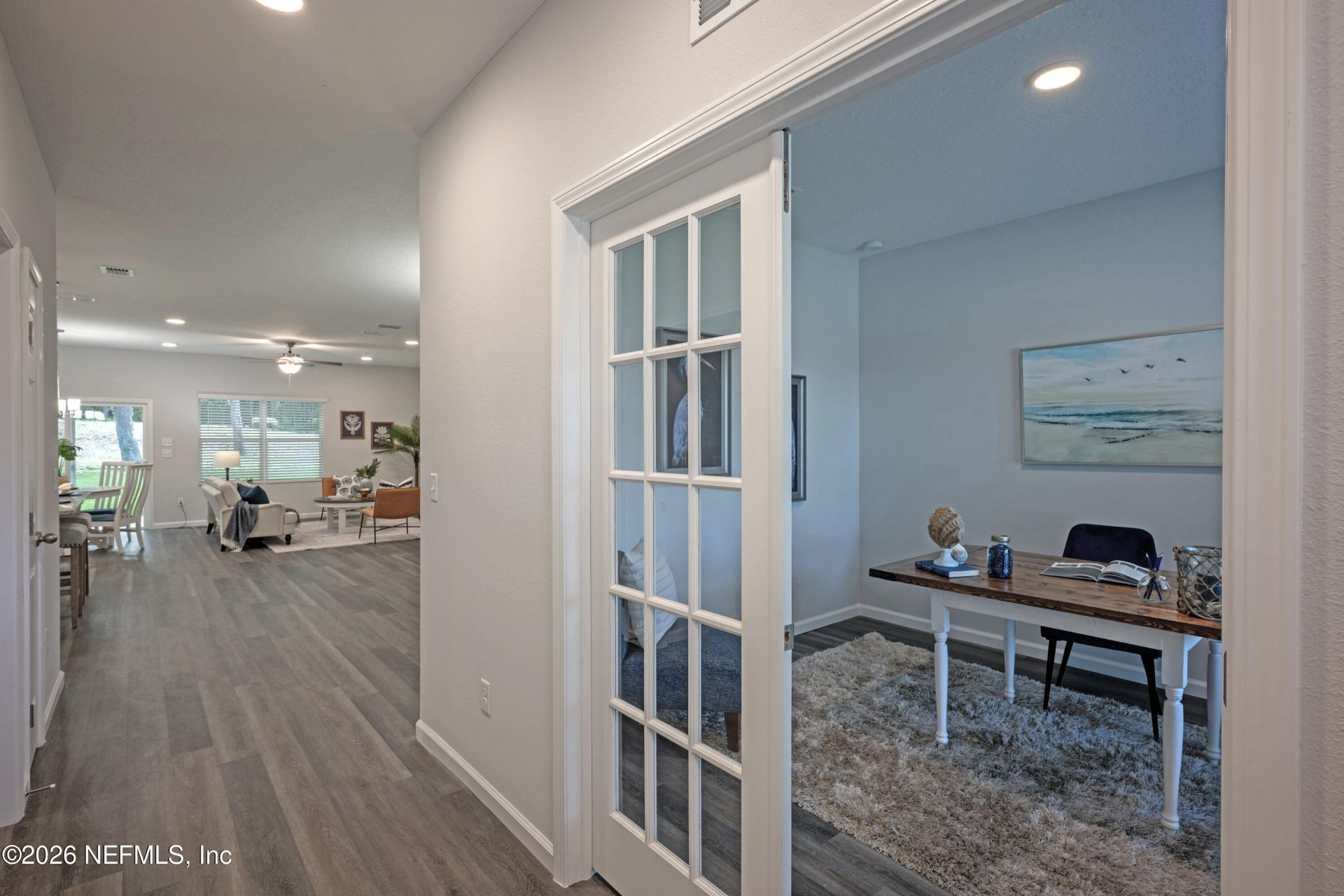 UNDER CONSTRUCTION (completion approx mid-July)! Beautiful 4/2 home with an office space, and covered lanai, near River City Marketplace, shopping, restaurants, and more. The open concept floor plan is always a plus, and the inclusion of white cabinets, granite countertops, and Revwood flooring in the color aged burlap oak in living areas (with carpet in the bedrooms) will add a modern and comfortable touch. The stainless-steel appliance package which includes a side-by-side fridge, self-cleaning glass top range, dishwasher, and OTR microwave are a great convenience for any homeowner. It's also reassuring that the home comes with a 1-year builder warranty and termite bond, providing peace of mind for the buyer. This property is well-equipped and designed for modern living. The combination of features and location makes it a compelling option for those looking for a new home in a fast-growing area. Staging photos are an example, colors, finishes, fixtures may vary. This home is equipped with a performance based engineered septic system, ensuring efficiency and reliability; city required yearly maintenance agreement and fee will be in place.