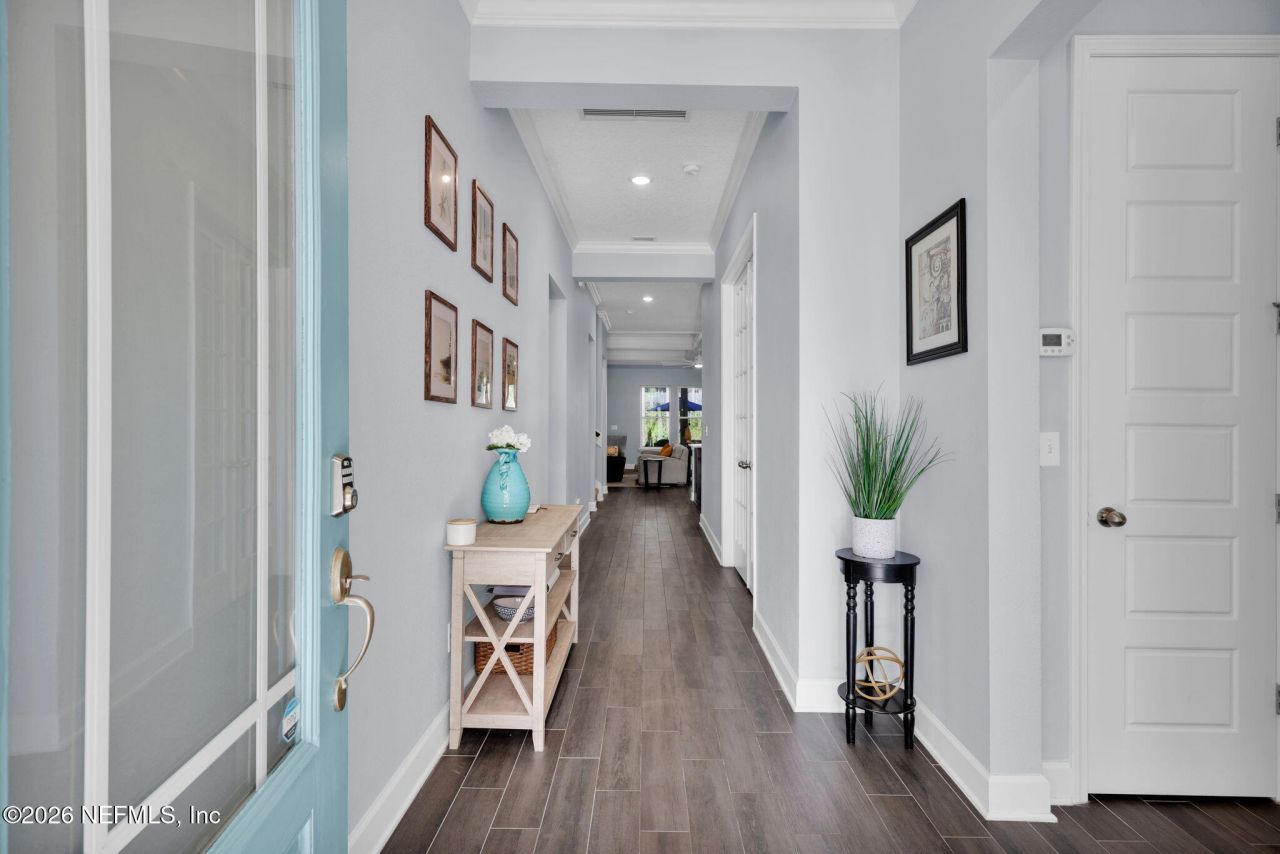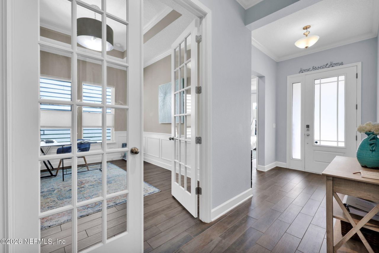 Refined design and everyday livability come together beautifully in this Twenty Mile home with a dedicated office, preserve backdrop, and thoughtfully flexible layout. The bright, open interior features wide-plank wood-look flooring downstairs, glass French doors, detailed ceiling treatment, built-ins, and an electric fireplace that adds warmth and character. The kitchen is both functional and impressive, with a gas cooktop, walk-in pantry, stainless appliances, and an oversized quartz island designed for gathering. Each bedroom has its own full bath, including a private upstairs suite with walk-in closet and Florida basement storage, ideal for guests, hobbies, or multigenerational living. A screened lanai overlooking the preserve creates a peaceful outdoor retreat, for morning coffee or winding down at the end of the day. Custom blinds, built-in safe in the Owner's Suite, tankless water heater, water softener, and full-yard irrigation add comfort and convenience. And then there is the part buyers love about Nocatee: life beyond the lot line. Golf cart paths connect neighborhoods to amenities and Town Center, with greenway trails, water parks, fitness amenities, dining, shopping, and the beach just minutes away. This is the kind of place where golf-cart dinners, amenity-filled weekends, and easy beach runs are not a special occasion. That's everyday life here.140 Whisper Rock Drive is more than a beautiful house. It is a home with warmth, flexibility, and that hard-to-fake feeling that life could feel really good here. Schedule your private showing and come see just what your Nocatee life could look like!