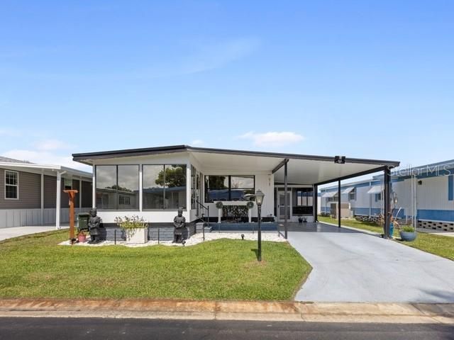 This beautiful 2 bedroom, 2 bath manufactured home is located in Emerald Lakes, a 55+ waterfront community with private marina and community boat ramp on Lake Palatka in Clermont. There is no lot rent. Recent upgrades include appliances, updated bathrooms, roof, air conditioning system, lighting, and luxury vinyl flooring throughout. The flooring system has been upgraded and is FHA approved. There is an enclosed, private sun room, living room and side screened patio. This home has an external laundry room and a workshop area. Monthly dues of $305 include Cable, Internet, water, sewer, grounds, maintenance and access to the clubhouse which has year-round activities. Residents enjoy a wealth of amenities, including a heated pool, bocce ball, shuffleboard, and a clubhouse with a library, billiards, a full kitchen and entertainment space. The community offers direct access to the Clermont Chain of Lakes, with boat slips available for rent when available. This is a fisherman's and boater's paradise! It is conveniently located near shopping, restaurants, golf courses and medical facilities.