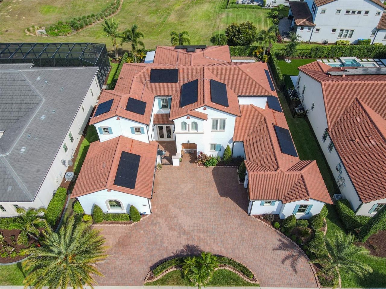 Prepare to be awed by this stunning estate from the Toll Brothers executive collection in the renowned community of Lakeshore Preserve. This home presents an ultra modern layout bringing you an environment that caters to both entertaining and every day life. The first floor is open and has 2 sets of triple pane sliding glass doors that fully open to your personal oasis. Beyond the covered lanai is a beautiful pool, spa and cabana area, perfect for a mid day swim or watching Disney fireworks at night. The kitchens, indoor and outdoor, and sure to impress even the most fastidious of chefs with the natural gas cooktop, multiple mounted range hoods, quartz countertops and more. This property is not only a smart home but also environmentally conscientious with newly installed solar panels and an electric car charger. All furniture is included with the sale of this home, the only thing you need is the keys to begin living your best central Florida life. Virtual Tour Available.