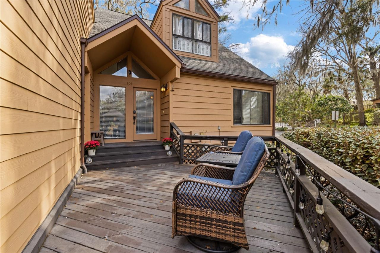 Welcome to Park Place of Ocala a quiet Gated Community. This Townhome 2 bedroom, 2 bathroom, 1,461 sq ft townhouse is a light-filled, design-forward corner residence offering a rare blend of modern upgrades, timeless character, and an unbeatable central location. With soaring volume ceilings and an oversized corner floorplan, this home lives large and feels bright, open, and inviting from the moment you step inside. $1,500 SELLER CREDIT TOWARD BUYERS CLOSING COST, plus HOME WARRANTY INCLUDED. Extensively updated between 2020-2025, major improvements include a newer ROOF (2018), updated WATER HEATER (2021), new SLIDING GLASS DOOR (2025), and rebuilt FRONT (2020) and REAR DECKS (2023)-creating seamless indoor-outdoor living. The rear deck is a private retreat featuring privacy lattice, lush jasmine, bamboo, and serene oak hammocks beyond, enhanced by ambient color-changing caf? lighting. A 4-person recessed seating picnic table and front porch swivel chairs with table convey with the sale. The light & bright KITCHEN (2022) has been beautifully reimagined with light-tone cabinetry, butcher block countertops, undermount Neoroc farm sink, backsplash and tile accent wall, open shelving, and a converted pantry for added storage. Blk stainless appliances include a KitchenAid French-door Refrigerator and Bosch Dishwasher (2022). Both BATHROOMS were fully renovated (2022), featuring Granite Counters, Wood-Look Porcelain Tile Flooring, custom mirrors, lighting, and faucets. The custom-built Primary Bath (2022-2023) is a true showpiece with an expanded Roman-style Shower, built-in seat, Tile Niches, glass Enclosure, and Pebbled Stone Mosaic Flooring. The spacious primary suite offers dual closets and a farmhouse-style glass privacy door. Additional interior highlights include: Herringbone Vinyl Plank Flooring + Porcelain Wood-look tile in Kitchen, Baths & laundry, Converted open-concept laundry room (2021) with shelving and champagne Samsung washer/dryer with steam feature, Remodeled stone-accent wood-burning fireplace with custom shelving and textured built-ins, Cornices, board & batten, and custom trim work (2023), Renovated Guest Bedroom/Office with designer Wallpaper and Custom detailing, Premium sound-dampening stair carpet, Modern fans and elevated lighting fixtures throughout, Fresh Interior Paint (2024), Three outdoor Ring cameras. Three mounted premium flat-screen TVs-including a brand new 65 4K Smart TV-also convey. Select designer furnishings and artwork available separately. Park Place has a Pool and Jacuzzi plus the added security of a Gated Community. HOA is $375/monthly, and there is no CDD or other assessments. Situated just 1.2 miles from downtown Ocala, you'll enjoy effortless access to the restaurants and shops surrounding Ocala Downtown Square, including local favorites like Mark's Prime Steakhouse, Katya Vineyards, Say Taco, and Mellow Mushroom. Catch a show at the historic Marion Theatre or explore the trails, playgrounds, and courts at Tuscawilla Park near the Reilly Arts Center. Convenient to the World Equestrian Center, Paddock Mall, and major corridors including I-75 for easy access to Tampa, Jacksonville, and Orlando-all approximately 1 to 1.5 hours away. Located in historic Marion County-one of Florida's fastest-growing metropolitan areas-this move-in-ready, thoughtfully upgraded home offers comfort, style, and location all in one exceptional package.