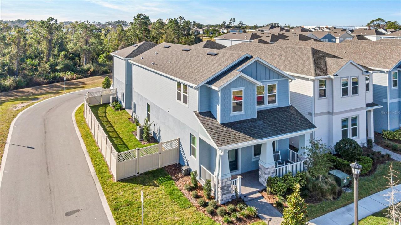 Situated on one of the best corner homesites in the bungalow section of Harvest at Ovation, this 2024 Elevation B home offers privacy, wooded views, and natural light that interior lots simply don't have. With no rear neighbors and windows on multiple sides, the home feels open and well-positioned from the moment you arrive.There is approximately 2,860 square feet under roof, including 2,393 square feet of main living space plus a fully permitted 530-square-foot in-law suite above the garage. The suite includes its own living area, kitchenette with wet bar, and full bath, making it ideal for extended family, long-term guests, or a private home office setup.The kitchen was built with the full gourmet option and is the only bungalow in the neighborhood configured this way. It includes three ovens, quartz countertops throughout, 42-inch cabinetry, soft-close drawers, stainless steel appliances, and a large walk-in pantry. It was designed for someone who actually cooks and entertains.Additional features include luxury vinyl plank flooring, a tray ceiling in the primary bedroom, wood stair treads, tile showers, quartz bath counters, recessed lighting, audio pre-wire, built-in garage storage, laundry room built-ins, zoned HVAC, and tankless water heaters. The first-floor block walls were upgraded with core-fill foam insulation, providing improved energy efficiency and a quieter interior.The fully paved lanai and corner placement create a more open and private outdoor setting than most homes in the community. Harvest at Ovation offers a pool, park, and playground, and the location puts you minutes from Hamlin Town Center, top-rated schools, SR-429, Walt Disney World, and Flamingo Crossings.This is one of the most thoughtfully built and best-positioned bungalows in the neighborhood.