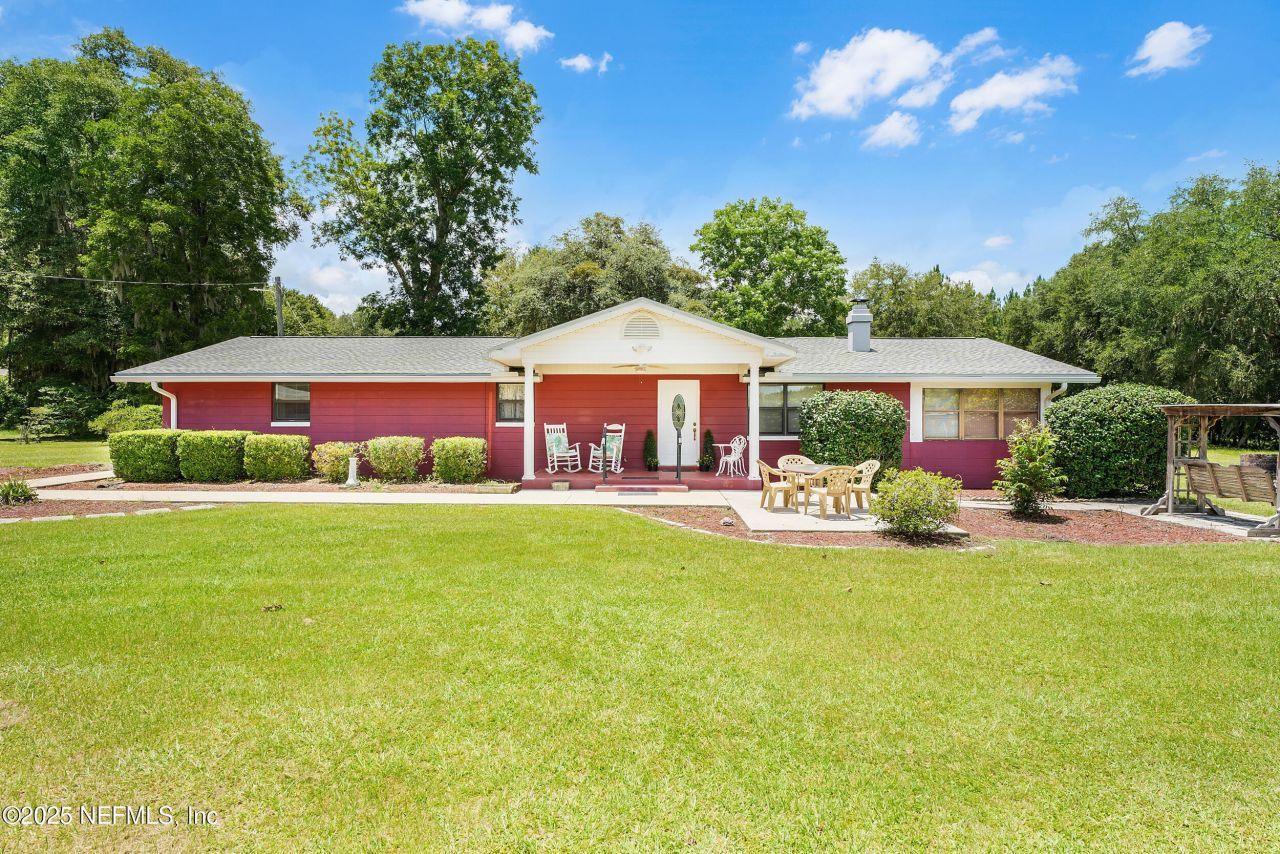 Escape to your own private oasis just 10 minutes from downtown Hilliard and the FAA Center. This 3-bedroom, 2-bathroom home offers tons of space for everyone with multiple living areas, including a spacious living room, a cozy family room with a brick fireplace and built-ins, and a bright sunroom overlooking the peaceful property. Built in 1969, this primarily block home sits on nearly 29 acres of serene countryside, featuring a spring-fed, fully stocked 2.5-acre lake with a fountain and approximately 11 acres of planted pine trees, some near maturity and others around seven years old.Enjoy outdoor living at its finest with a charming front porch and patio perfect for dining or relaxing. Inside, you'll find wood paneling details, laminate and engineered wood flooring, and carpet in one bedroom. The home is wired for a generator, has a wood-burning fireplace with insert stove, fresh interior paint throughout, and updated electrical (October 2025) with receipts. Additional updates include a newer HVAC (2018) and roof (June 2020). The property also features a detached 2-car block garage with water and electricity, plus two additional outbuildings with power - one also equipped with water and a metal roof. A barn (approx. 17x20) and an additional back room (approx. 15x20) offer even more space for hobbies, storage, or projects. Surrounded by oak trees, fruit trees, and blueberry bushes, this property combines the tranquility of country living with practical updates and endless possibilities.