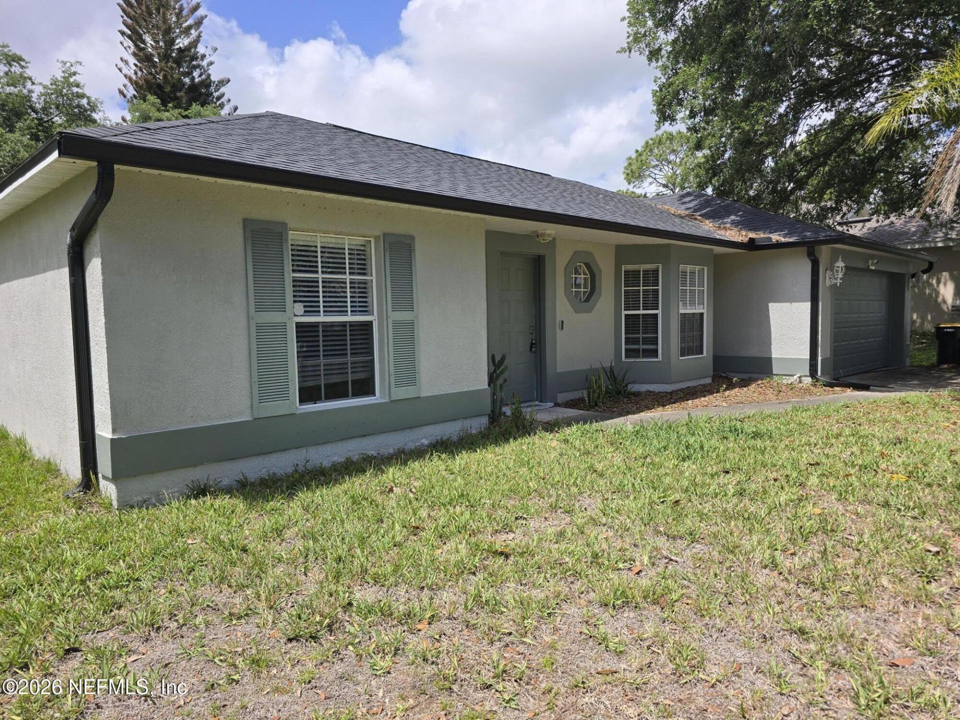 Perfect for first-time buyers! This charming 3-bedroom, 2-bath concrete block home in Palm Bay offers comfort, space, and peace of mind with a 2-car garage and freshly painted interior. Home includes solar panels. The vaulted ceilings and beautiful architectural details create an open, inviting feel, while the spacious back porch and fully fenced backyard provide the perfect setting for relaxing, entertaining, or letting pets play. A wonderful opportunity to own your first home with room to grow!
