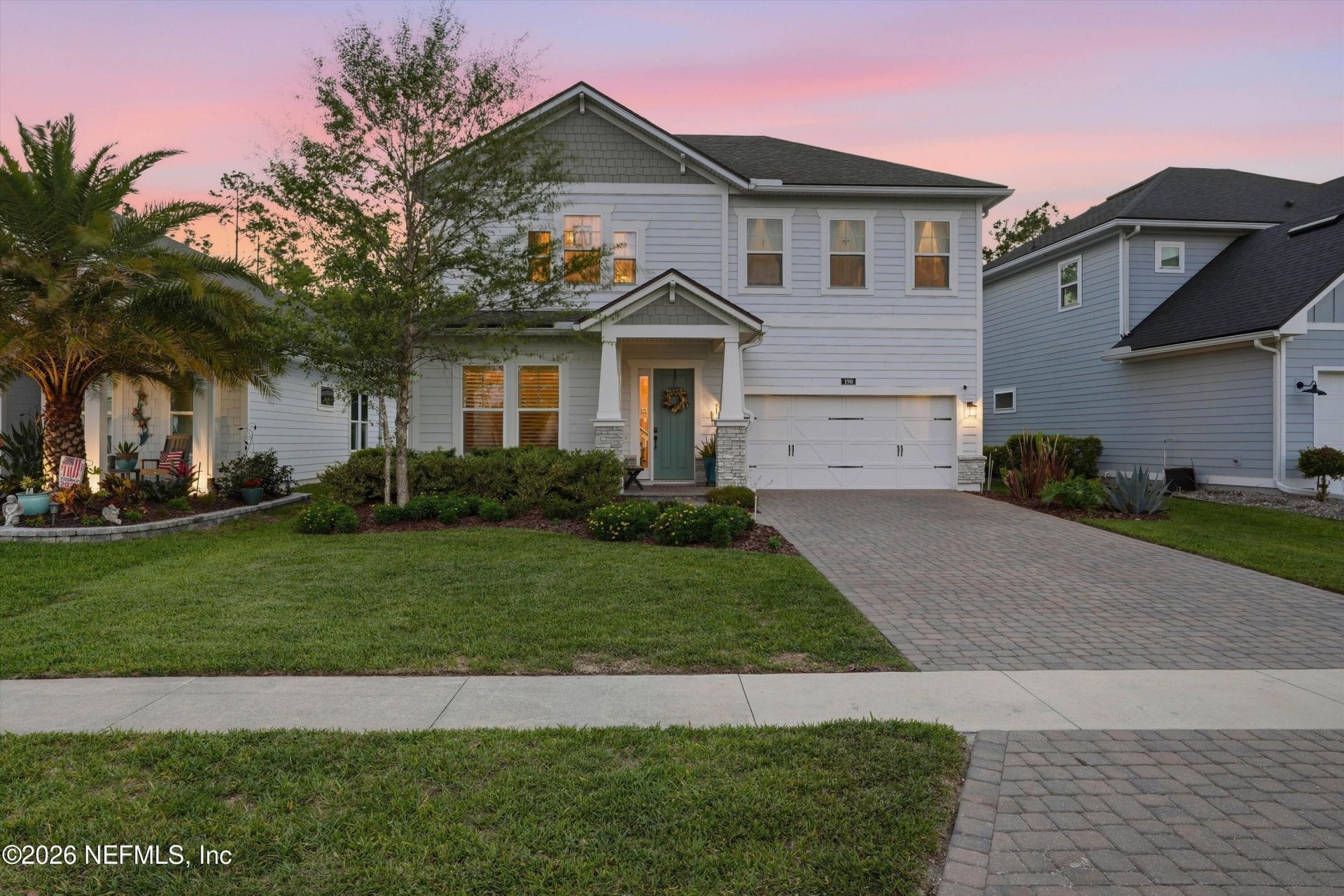 Welcome to this beautiful pool home featuring the award-winning Providence Gilchrist floor plan with 4 bedrooms, 3.5 bathrooms, and 2747 square feet of expertly designed living space. This home offers an exceptional indoor-outdoor lifestyle with brand new custom integrated pool and spa, screened-in lanai, gas fire pit, and summer kitchen perfect for entertaining or quietly enjoying the panoramic view. Positioned against the preserve and landscaped for privacy, the backyard becomes your private oasis.The main level of the house is designed for functionality, while maintaining a spacious, luxurious feel. A private home office with custom built-in bookshelves and cabinets provides the perfect workspace while the open concept living areas provide versatility to fit your lifestyle. The first floor primary suite serves as a peaceful sanctuary while the living areas flow seamlessly for everyday living and entertaining. The garage offers built in storage upgraded epoxy coated flooring for ease of use. Upstairs, a flexible loft offers the ideal media room, play space, or secondary living area. Three additional bathrooms and two full bathrooms complete the second floor offering ample space for family or guests. Located within the award-winning, master-planned community of Nocatee, residents enjoy access to world-class amenities, top-rated St. Johns County schools, parks, trails, and resort-style water parks all while returning home to the peace and privacy of a preserve setting.This home offers the perfect blend of luxury, space, functionality, and lifestyle in one of Northeast Florida's most desirable communities.