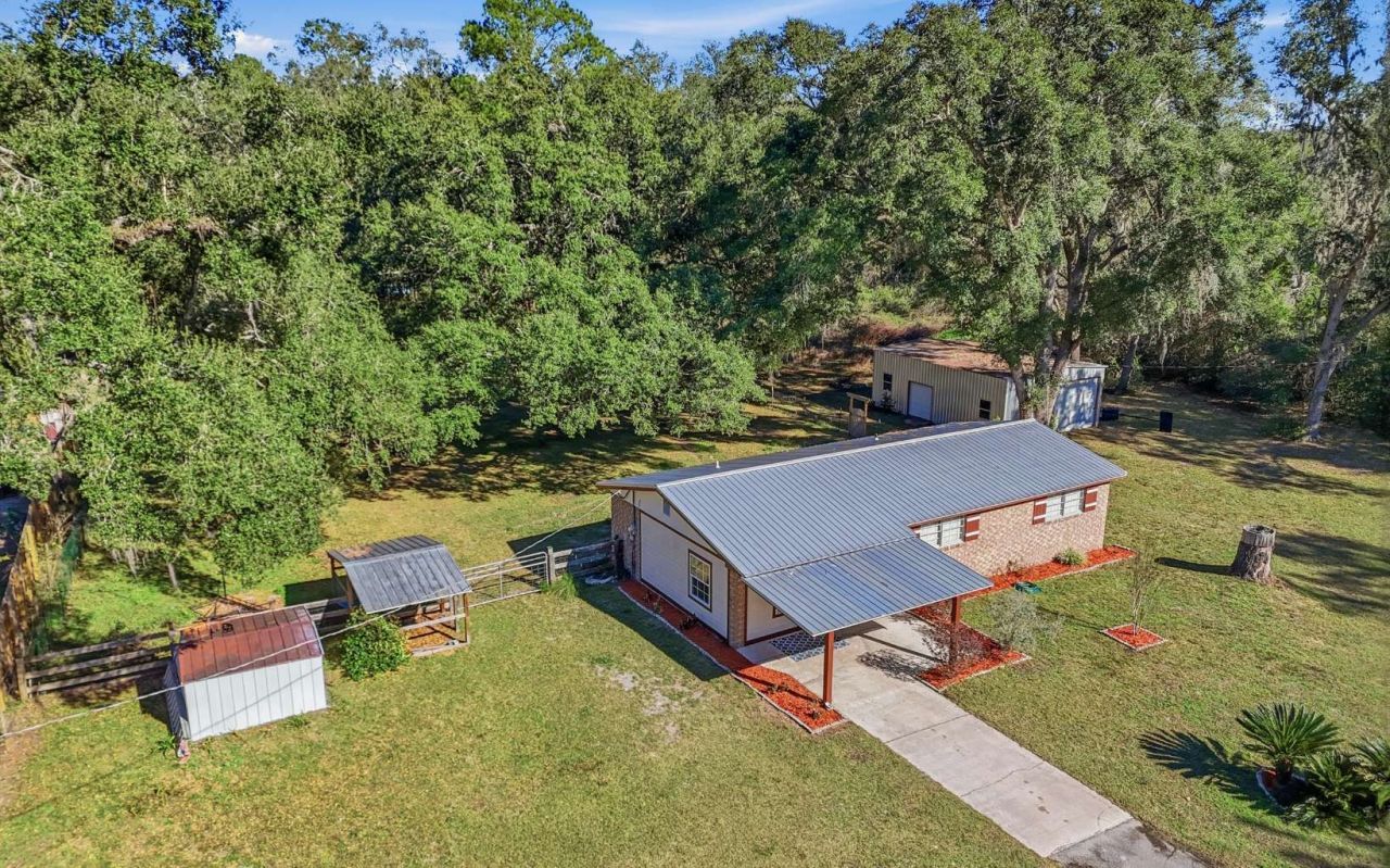 Charming brick home on 1 acre in Lake City, Florida offering the perfect blend of privacy and convenience! Nestled beneath gorgeous mature oak trees, this 3-bedroom, 1-bath property provides a peaceful setting while being just minutes from shopping, dining, and everyday amenities. This home features a durable metal roof, stainless steel appliances, and a functional layout ideal for comfortable living. Outside, you’ll find a 1-car covered carport, fenced yard, and a metal workshop that is perfect for storage, hobbies, or small business use. With ample space for outdoor living, gardening, or pets, this property is ideal for those seeking a little extra room without sacrificing proximity to town. Whether you're a first-time homebuyer, downsizing, or looking for an investment opportunity, this Lake City home with land checks all the boxes.