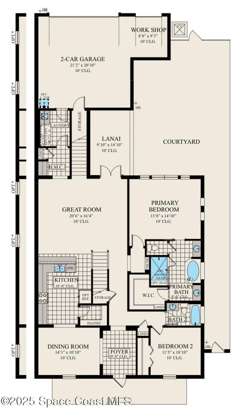 Almeria II is a sophisticated 2-story home featuring a great room and kitchen that overlook a gorgeous lanai. The master bedroom overlooks a spacious courtyard. Spend the evenings enjoying the sunset on the second story balcony. This home features a gourmet kitchen with walk-in pantry, bonus room with bath 4 and workshop.