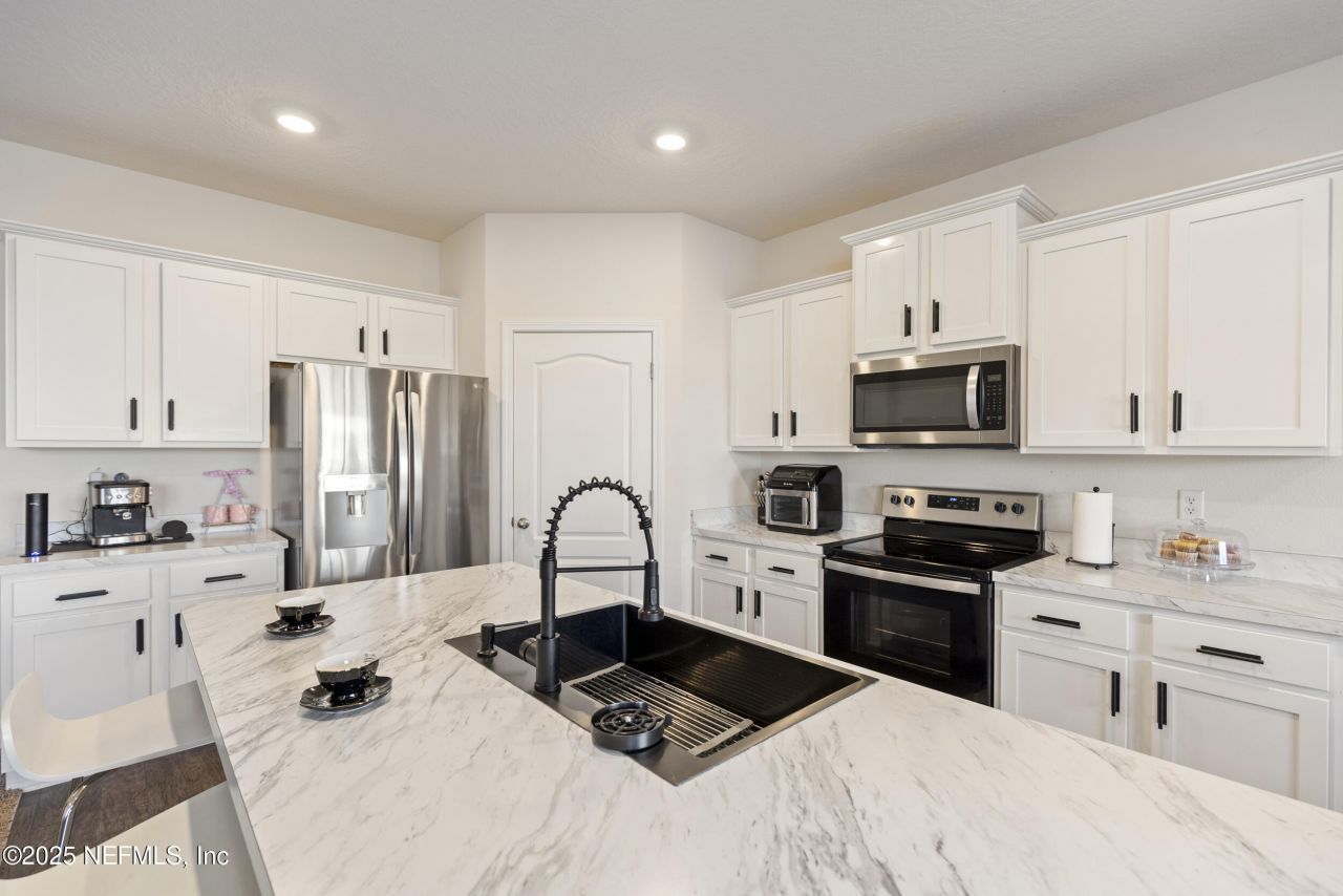 Discover modern comfort in this beautiful 5-bed, 3-bath home. Enjoy the private, fenced yard and extended patio with a wonderful lake view, ideal for outdoor gatherings. Spacious bedrooms offer retreats, while the office and loft provide flexible spaces for work and play. Fresh paint, upgraded hardware, and thoughtful details elevate the experience. Residents of Cross Creek enjoy access to resort-style amenities, including a resort pool, lap pool, state-of-the-art fitness center, playground, dog park, and even RV/boat storage, all just minutes from top-rated schools, shopping, dining, and major commuter routes. Includes solar panels for energy efficiency and lower bills. Zoned for top Clay County schools, near Fleming Island shopping, and 25 mins to NAS Jax. Don't miss your chance to own this turnkey home in one of the area's most sought-after communities. Schedule your showing today!!