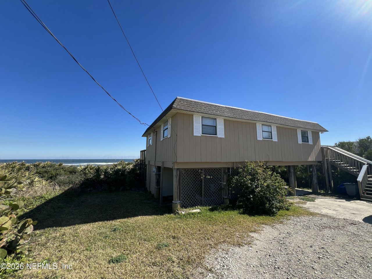 Oceanfront home in South Ponte Vedra on a spacious lot! Wake up to the sun rising over the ocean & watching & listening the birds on the beach! Large oceanfront deck to relax on & listen to the lapping of the waves! New solid surface kitchen countertops and appliances with this 3 bedroom & 2 bath home! Furnishings negotiable! Great for full time living or for short term rentals! Convenient location N of the Gate Station & just a short drive to historic St. Augustine!