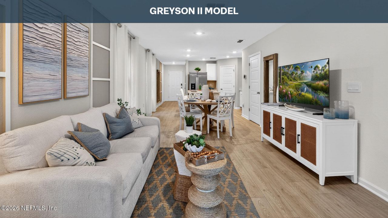 Step into the Greyson II, a beautifully designed villa that maximizes space and comfort. With approximately 1,373 square feet, this three-bedroom, 2.5-bathroom home offers the perfect blend of style and functionality. The open-concept layout creates a seamless flow between the spacious kitchen, dining area, and gathering room-ideal for entertaining family and friends. The large kitchen bar serves as the heart of the home, making meal prep both easy and enjoyable. Abundant natural light from sliding doors brightens the entire space, creating a warm and inviting atmosphere. Upstairs, the primary suite is a true retreat, featuring a spacious bathroom, a vanity, and a large walk-in closet. Conveniently located upstairs laundry adds to the home's practicality. The Greyson II isn't just a home-it's a smart investment. With energy-efficient features and thoughtful design, this stunning new construction villa is available in desirable neighborhoods across North Florida.