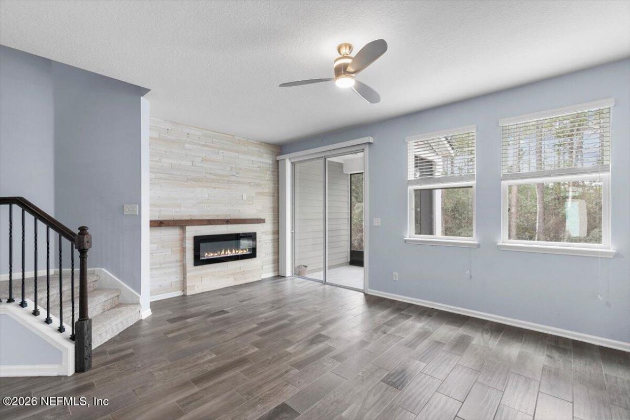 Welcome to Durbin Crossing of St. Johns County! This beautifully upgraded townhome offers the perfect combination of style, comfort, and convenience -- all within an area known for access to top-rated schools in St. Johns County. Step inside to discover a thoughtfully designed floor plan featuring a few upgrades throughout. The kitchen is a true highlight, showcasing upgraded appliances, stunning countertops, and ample cabinetry -- ideal for both everyday living and entertaining. The open-concept layout flows seamlessly into the living area, where a stylish fireplace creates a warm and inviting focal point. This is a move-in-ready opportunity with modern touches buyers will appreciate. Spacious bedrooms provide comfort and privacy. Step outside and enjoy your own private screened patio with a serene wooded backyard -- a rare and highly desirable feature that provides added privacy and a peaceful natural setting. Beyond the home itself, residents enjoy access to exceptional community amenities. Durbin Crossing features two amenity centers, complete with sparkling pools, a dog park, basketball courts, playgrounds, and more. Conveniently located near shopping, dining, and major commuter routes, this townhome combines low-maintenance living with access to everything St. Johns County has to offer!