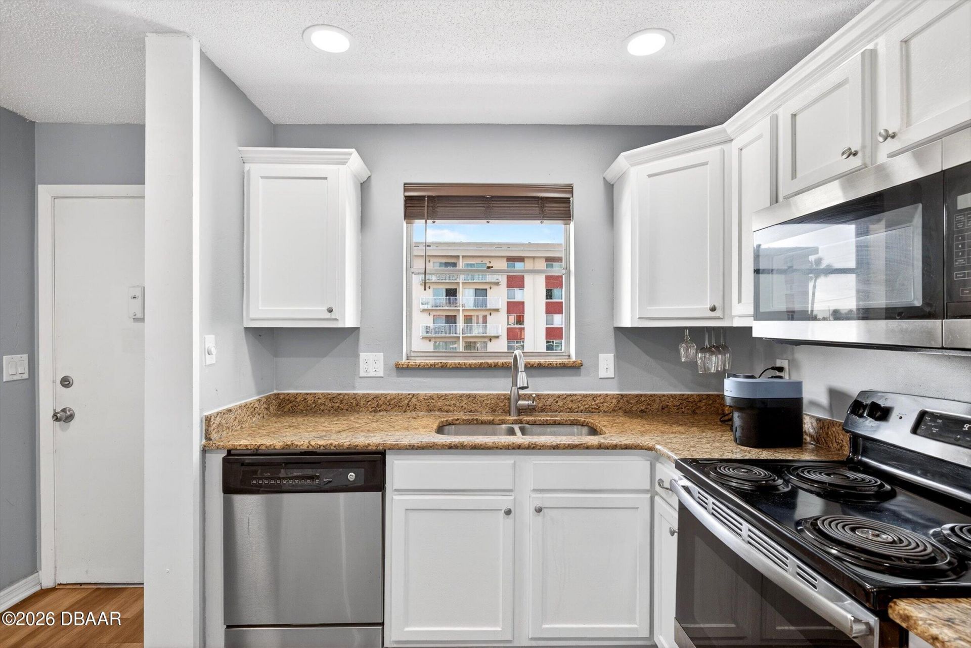 Experience the best of waterfront living--without the waterfront price tag. This beautifully maintained 2-bedroom, 1-bath condo offers sweeping Intracoastal Waterway views for under $150,000, an opportunity that's becoming increasingly rare. Inside, the light-filled layout feels both inviting and refined, with a thoughtfully updated kitchen featuring white shaker cabinetry, granite countertops, and newer appliances. Luxury vinyl flooring flows through the main living spaces, combining durability with a clean, modern aesthetic. A newer A/C unit (just 3 years old) adds to the overall comfort and peace of mind. Beyond the unit, the community delivers a true resort-style experience. Enjoy three saltwater pools, waterfront docks ideal for fishing or sunset views, shuffleboard courts, a game room, and a welcoming courtyard designed for relaxing or gathering with neighbors. The HOA covers water, trash, cable, internet, building insurance, and exterior maintenance--offering effortless, low- maintenance living. Whether you're looking for a full-time residence, a coastal retreat, or a smart investment, this unit stands out for its value, location, and lifestyle. Conveniently located near Bellair Plaza and just minutes from the beaches of Ormond and Daytona, you'll have the best of coastal living right at your fingertips. All information deemed reliable but not guaranteed.