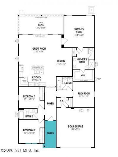 Lot 124 - This Glades floorplan blends sophisticated style with simple, comfortable living and charming Farmhouse elevation appeal. The open-concept Great Room and dining area create a seamless, inviting space ideal for everyday life and effortless entertaining. The island kitchen overlooks the main living areas, making it easy to stay connected with family and guests. Natural light flows in from the covered lanai, enhancing the bright, airy feel throughout the home. A versatile flex room adds valuable functionality. Privately tucked away at the rear of the home, the owner's suite offers a quiet retreat for relaxation. A convenient two-car garage completes the design, providing both comfort and practicality. Located in Sandridge Hills in Clay County, the community is designed for modern lifestyles, with planned amenities including a pool, cabana, dog park, and open green spaces, just 20 minutes from shopping, dining, and medical services, and 5 minutes from the First Coast Expressway.