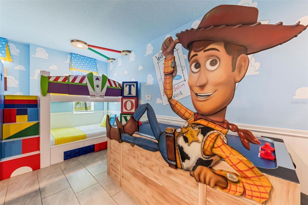 Epic listing with income potential over $110,000!!! Stunning 9-bedroom, 5-bathroom turnkey home with private pool and serene conservation views in the highly sought-after Storey Lake community. This fully furnished, custom-designed short-term rental property is a true standout, combining luxury, comfort, and advanced smart home technology to deliver an exceptional guest experience and strong investment potential.Step inside to discover a thoughtfully upgraded interior featuring custom ceiling beams, a striking stone accent wall, and three modified owner closets for added storage. The open-concept layout flows seamlessly into a beautifully appointed living and dining space, perfect for entertaining large groups.The home is equipped with cutting-edge cell-based automation and security systems, including an intelligent alarm system, remote-controlled pool and spa heating, multiple digital locks, smart thermostats, a FreshAire smoking detection system, Minut Noise Control, video doorbell, and three cloud-based security cameras. Additional upgrades such as Rachio smart irrigation and AC Guardian help optimize efficiency and reduce utility costs.Designed to impress, the home features several immersive themed bedrooms, including a Toy Story-inspired room, a magical wizard-themed bunk room, and a princess suite with a backlit castle headboard. Additional bedrooms include subtle themed designs inspired by icy fantasy and adventurous mountain settings, along with spacious king suites for added comfort.Entertainment is unmatched with a dedicated home theater featuring an 85-inch flat-screen TV, complemented by a total of 11 TVs throughout the property. Outdoor living is equally impressive, with a private screened-in pool, upgraded landscaping, ambient lighting, and privacy screens creating a relaxing and inviting atmosphere. A paver front patio adds to the home's curb appeal.Ideally located just minutes from world-class attractions, shopping, dining, and entertainment, this property offers both convenience and tranquility-perfect as a high-performing vacation rental or luxury second home.Don't miss this rare opportunity to own a fully equipped, income-producing property in one of Central Florida's premier resort communities.