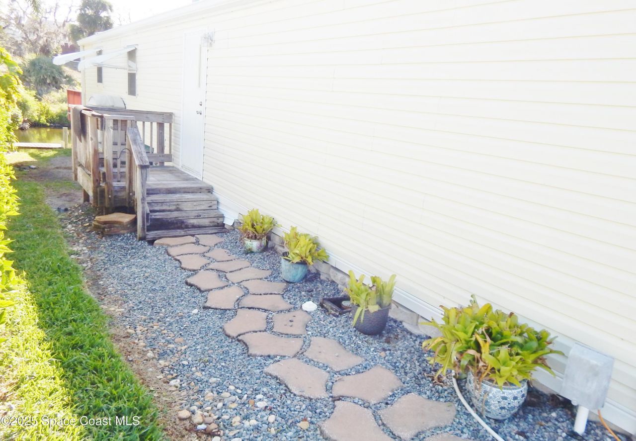 Built-in 2005, this 2 bed/2 bath home in Palm Bay Estates 55 and over waterfront community is the place to live!! Fully furnished with a new A/C, hot water heater, and updated boat lift & dock, as well as a washer and dryer, make it move-in ready. Located on the widest part of the canal, it lets you turn the boat around & makes it easier to get it to the dock. The home is tucked in the back of the parking lot, adding to the privacy you might be looking for. Barbecue on your wooden deck and enjoy the breezes. Take the boat out on the Indian River, down to the inlet, and out to the Ocean. The perfect home awaits, and the low HOA fees cover the cable, internet, a heated pool, clubhouse, and picnic area. The owners are including the car parked by the house.
