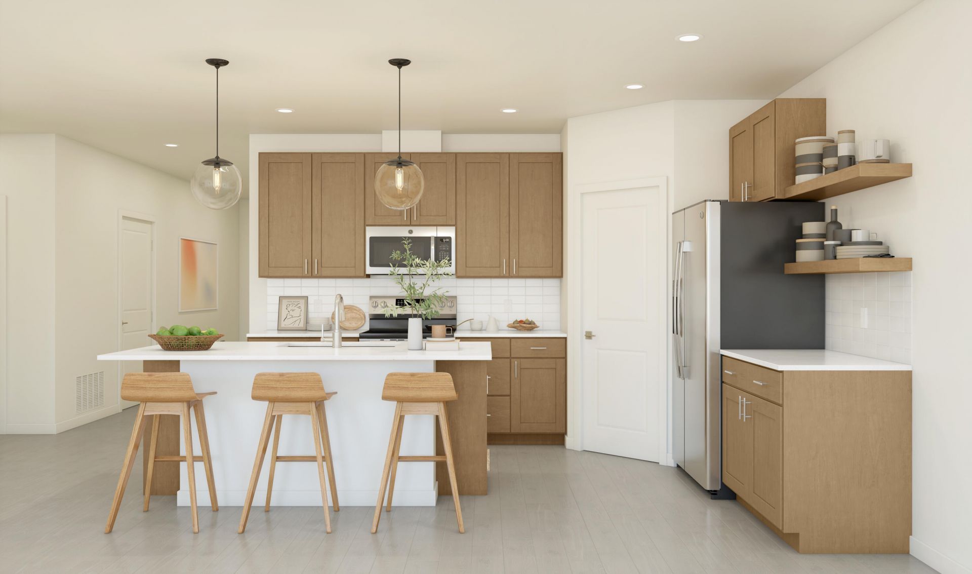 NO HOA FEES!! Beautiful 4-bedroom, 2-bathroom home, ideally located near shopping and dining. The Goldenrod II offers a bright and open floor plan designed for both comfort and functionality. Enjoy full tile flooring throughout the home, a complete appliance package, full impact windows, and installed gutters for added peace of mind. A convenient turnaround U-shaped driveway allows for easy access in and out of the property. The kitchen features white cabinetry, granite countertops, and a vast center island perfect for meal prepping and gathering. An inviting great room provides an ideal space for hosting family and friends, while the dining area offers direct access to the covered patio for seamless indoor-outdoor living.