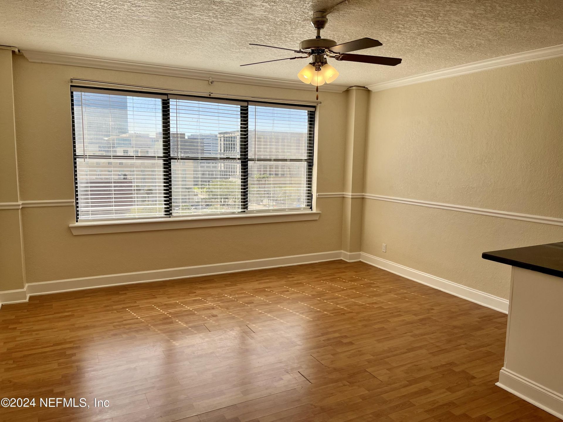 Investment opportunity! 7th Floor Studio with wood laminate flooring, textured walls, chair rails, crown molding, breakfast bar and great views of Downtown. Studio is in walking distance to several coffee shops and eateries as well as museums, theaters and bars.