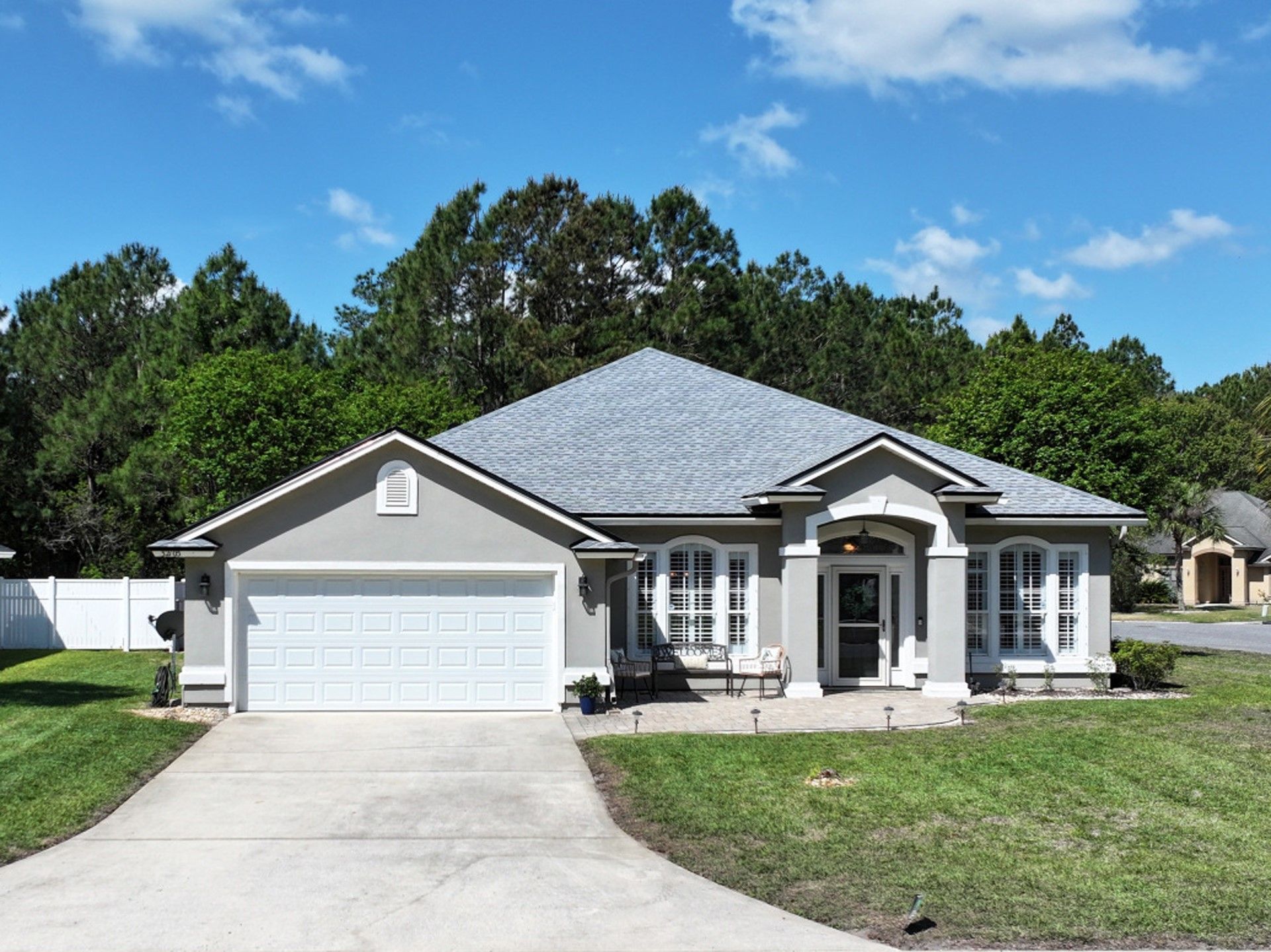 Welcome to 31205 Grand Parke Blvd, located in the highly sought-after Flora Parke community! This beautiful 2,219 sq ft home sits on one of the best lots in the neighborhood?a spacious 0.31-acre CORNER lot backing up to a serene preserve for added privacy. Youre greeted by inviting curb appeal, highlighted by a charming pavered front patio. Step inside to find gleaming hardwood floors, plantation shutters throughout, and a bright, open layout with 9-foot ceilings. The thoughtfully designed split floor plan offers both functionality and privacy. The chefs kitchen features granite countertops, stainless steel appliances, and ample space for cooking and entertaining. The oversized primary suite is a true retreat, complete with tray ceilings, dual walk-in closets, and large en-suite bath with soaking tub. The great room is perfect for relaxing or hosting guests, showcasing custom built-ins, a cozy gas fireplace, and expansive windows overlooking your backyard oasis. Step outside and enjoy the best of Florida living?your private screened-in retreat includes a heated, automated salt water pool and spa, entertaining space and a covered lanai ideal for outdoor dining. Beyond the screened enclosure, the fully fenced, oversized yard is filled with fruit trees and backs to preserve, offering both beauty and privacy. Recent upgrades provide peace of mind and energy efficiency, including a NEW roof, fully paid-off solar panels, newer HVAC system, owned water softener, and water heater. Residents of Flora Parke enjoy LOW HOA fees and access to community amenities such as a playground, open green spaces, and basketball courts?all conveniently located near I-95, top-rated schools, shopping, dining, and the beaches of Amelia Island.