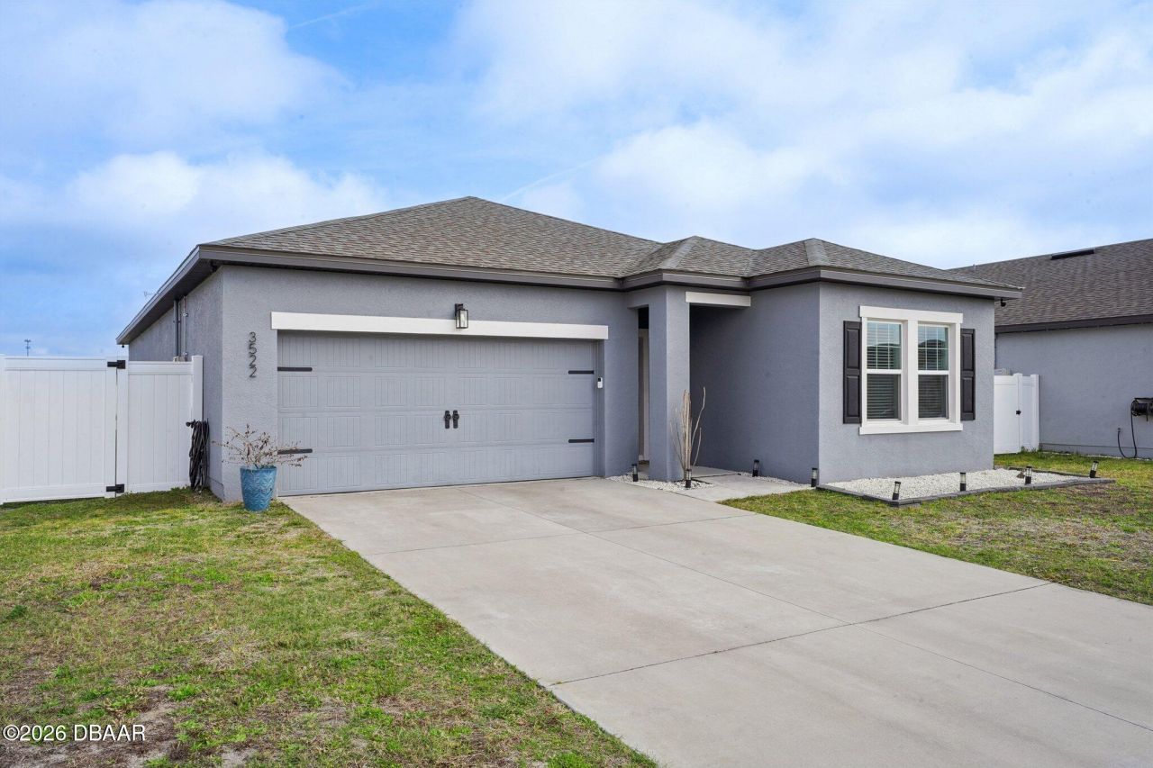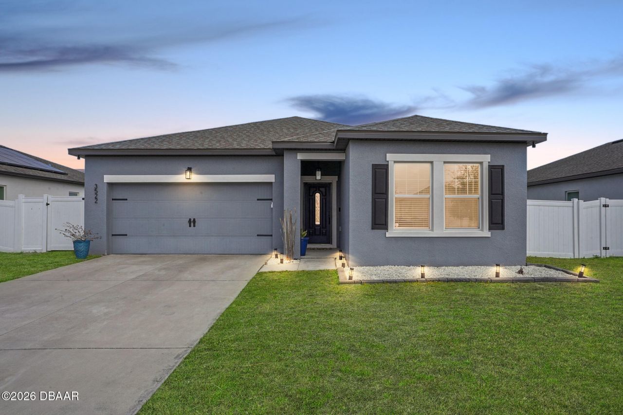 LOW HOA OF $68 A MONTH | NO CDD Large Hawking floorplan available in the newer, modern Fernanda Place development, conveniently located near major highways including I-4 and SR 415. BUILT IN 2021 WITH 2021 ROOF, WATER HEATER, AND HVAC. This one-story 3-bedroom, 2-bathroom home is partially furnished and features an open-concept layout with a spacious kitchen, dining, and living area overlooking the covered rear porch. The kitchen offers granite countertops, stainless steel appliances, a large center island, and a pantry. Waterproof luxury vinyl flooring runs throughout the main living areas with carpet in the bedrooms. All bedrooms are generously sized, including a primary suite with an oversized walk-in closet comparable in size to a bedroom. The fully fenced backyard includes vinyl privacy fencing and a built-in deck, ideal for relaxing evenings or entertaining. A two-car garage adds convenience and storage. Residents enjoy a community pool and lounge area, perfect for enjoying the Florida lifestyle. Conveniently located near shopping, restaurants, schools, and more. This move-in-ready home is affordable, well maintained, and ready for its next owner.