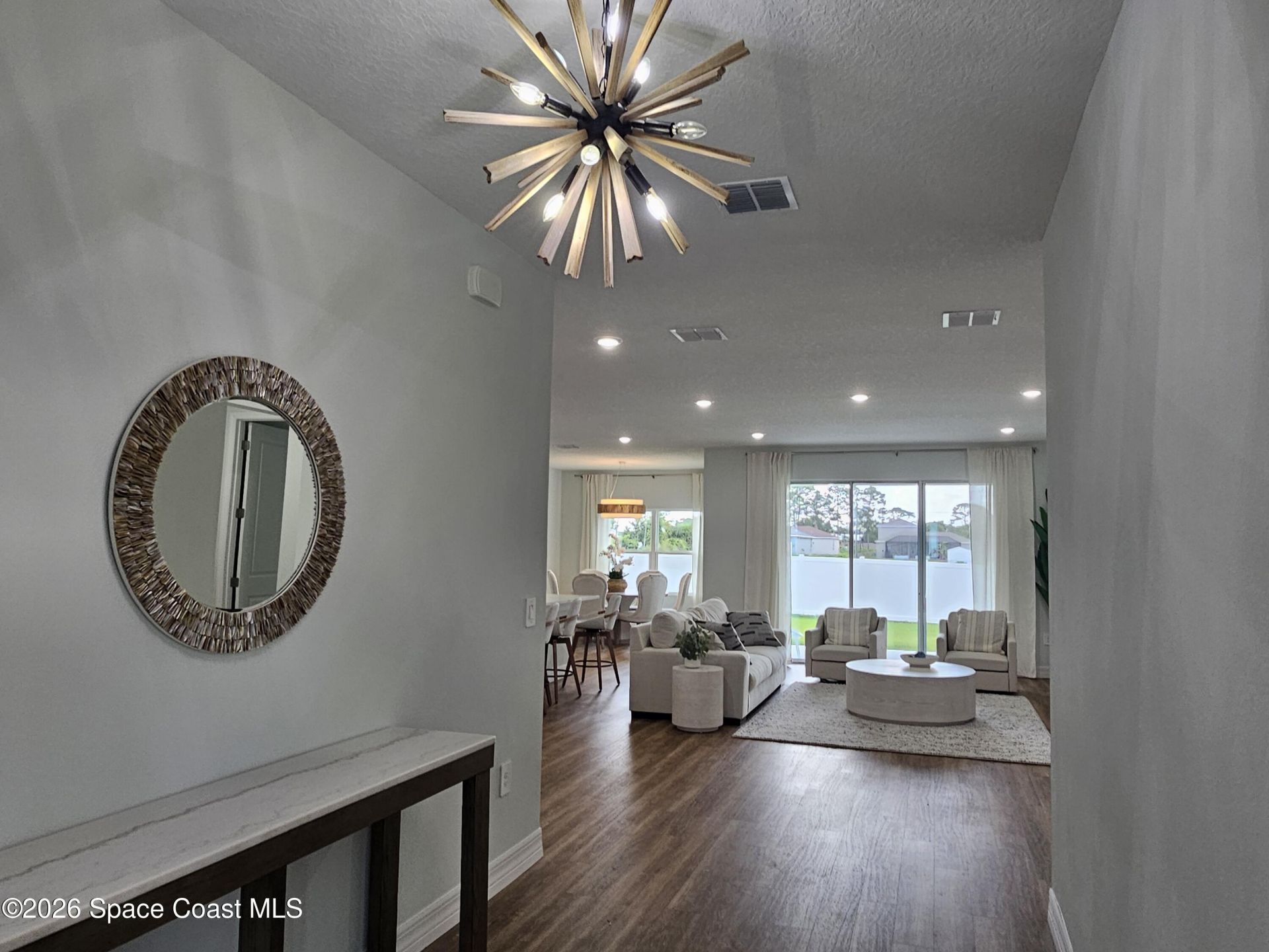 Introducing the Major, a spacious 4-bedroom, 3-bath home with a 3-car garage offering 2,478 sq ft of thoughtfully designed living. Soaring 94 ceilings create an open, airy feel, leading into a wide open-concept layout connecting the great room, dining, and kitchen. An expansive slider fills the space with natural light and opens to the covered lanai, perfect for indoor/outdoor living and entertaining. The chef-inspired kitchen showcases stunning quartz countertops, soft-close cabinetry, tile backsplash, a large island, and all Samsung appliances included. The private primary suite features a tray ceiling, walk-in closet, and spa-like bath for a true retreat. Three additional bedrooms and a Jack & Jill bath, offers flexibility for families, guests, or home office use. This home is gorgeous, designed for comfort and clarity. Nestled on a corner lot and in a great location. Dont miss it ! Schedule your showing today. Photos are samples.