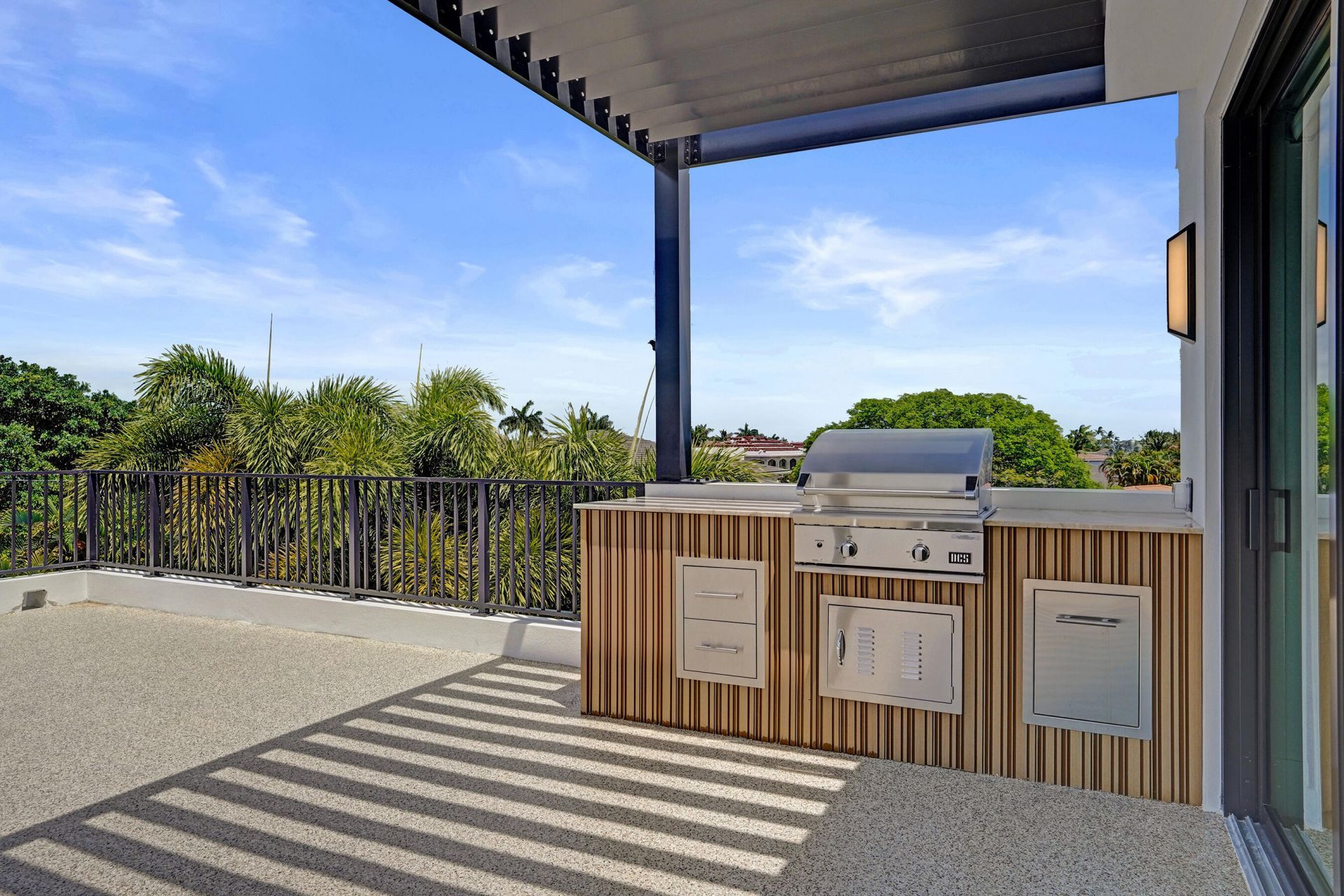 Welcome to Villa Aurelia, the Golden Villa, a recently completed modern masterpiece, located in the sought after Golden Triangle neighborhood of East Boca Raton, just moments from Mizner Park, the Intracoastal and the glistening waters of the Atlantic Ocean. Offering 7554 sqft of elevated living, this residence features 5 bedrooms, 5 full baths, and 3 half baths, along with a private office, club room, loft, elevator, and two laundry rooms-perfectly balancing luxury and functionality. The chef's kitchen is truly inspirational with Italian imported custom cabinetry, Wolf and Sub-Zero appliances, Crystallo countertops, a full wine refrigerator, built-in espresso machine, and a separate butler/kosher kitchen-ideal for seamless entertaining. Impressive details such as one of a kind, Italian magnetic doors, stunning custom built closets, and countless lavished design elements are showcased throughout. The primary suite is a private retreat with a spa-like bath, two expansive walk-in closets and its own dedicated AC zone. Additional highlights include Control4 smart home technology, natural gas, tankless hot water heater, impact windows, and a convenient elevator connecting all 3 levels seamlessly. The home is generator-ready for ultimate peace of mind. The tranquil outdoor living space is exceptional, featuring a 38 foot saltwater pool with sun shelf, covered patio, and two fully equipped summer kitchens-one poolside with cabana bath and outdoor shower, and a second one on the stunning rooftop terrace showcasing panoramic views of downtown Boca Raton, perfect for sunset entertaining. Offered furnished with designer Italian pieces, Villa Aurelia is a rare opportunity to move into a brand-new, thoughtfully curated ultra-luxury home that is truly one of a kind.
