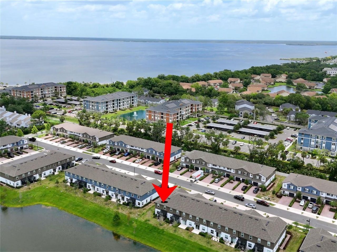 Better than new and impeccably maintained, this stunning end unit townhome is perfect for those who appreciate breathtaking water views and unforgettable sunsets. LOW HOA FEE-$225.00-COVERS YARD CARE, EXTERIOR PEST SERVICE, RESERVES FOR ROOF & EXTERIOR PAINT, GATED ENTRY, BEAUTIFUL POOL, & DOG PARK. The versatile floor plan offers 4 bedrooms-3 full bathrooms, including a convenient first-floor spacious bedroom & full bathroom, and a 1-car garage complemented by a convenient two-car-wide driveway. Much Preferred End Unit, offering you more natural light, privacy, outdoor living space, and the flexibility that usually only comes with a single family home. This particular home is located on the water, with relaxing sounds & views from the community featured water fountain. You'll love all the natural light flowing in through the windows and sliding glass door, keeping it light and bright. The open-concept great room and kitchen combination is inviting from the moment you step foot in the front door. You'll find ample storage in the L-shaped kitchen featuring 42 cabinets, a large island with seating, and a pantry. Upgraded Cabinets & Upgraded Stone Countertops, this kitchen is a must see! A full bath and bedroom on the first floor create a private guest suite, nice in-law suite, or a comfy home office or hobby room. There is also a screened in patio for everyone to enjoy the water views. Upstairs, you'll find a spacious loft, creating additional living space, and the laundry closet centrally located to all the bedrooms. A large owner's suite features a walk-in closet with window, while the bath showcases dual sinks, oversized shower, and linen storage. Two additional bedrooms are located to the rear of the home and have access to another a full bathroom. Included with the home is a Springwell Water Filtration System. Also, there are upgraded ceiling fans and light fixtures throughout your home! Don't forget the upgraded residential fire protection systems located inside your home, this will help with lower insurance costs. Enjoy your backyard with your little ones, plenty of space for outdoor fun..throw the frisbee, play corn hole, and enjoy the outdoor space. Enjoy maintenance-free living with access to a resort-style pool, community dog park, walking trails, biking trails, and fishing with proximity to Lake Monroe. Enjoy direct access from the walking and biking trail just outside your gated community to the scenic Lake Monroe waterfront, marina, and vibrant downtown Sanford. Downtown Sanford offers a vibrant mix of waterfront dining, craft breweries, boutique shopping, and a lively arts scene along the shores of Lake Monroe. Residents and visitors enjoy regular events like the Sanford Farmers Market, live music, and seasonal festivals that bring energy to the historic streets year-round. With scenic walking trails, marina views, and a charming small-town atmosphere, Downtown Sanford delivers the perfect blend of relaxation and entertainment just minutes from home. This Sanford home is 100% Energy Star 3.1 certified, which means it will save you on the reoccurring utility costs of owning a home. Some of the energy saving features include Core-fill insulation in the block walls, R-38 ceiling insulation, Radiant Roof Barrier, Low-E double pane windows. The Towns at Lake Monroe Commons is a must see Gated Community! Call for your private showing!