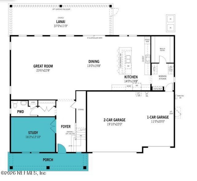 Lot 110 - The Ruby Craftsman showcases timeless curb appeal and a thoughtful blend of comfort and function. Off the foyer, a private study replaces the flex room, creating a quiet home office or retreat. The open Great Room and dining area are filled with natural light and flow seamlessly to the covered lanai for easy indoor-outdoor living. The chef-inspired kitchen features a large island, morning kitchen, and expansive walk-in pantry--perfect for daily life and entertaining. Upstairs, a spacious loft adds gathering space, while the owner's suite offers a spa-like bath and oversized walk-in closet. Three additional bedrooms include walk-in closets and private baths, with Bath 3 featuring a shower in lieu of tub. A 3-car garage completes this beautiful, practical home in RiverTown along the St. Johns River, where residents enjoy parks, trails, and resort-style amenities.