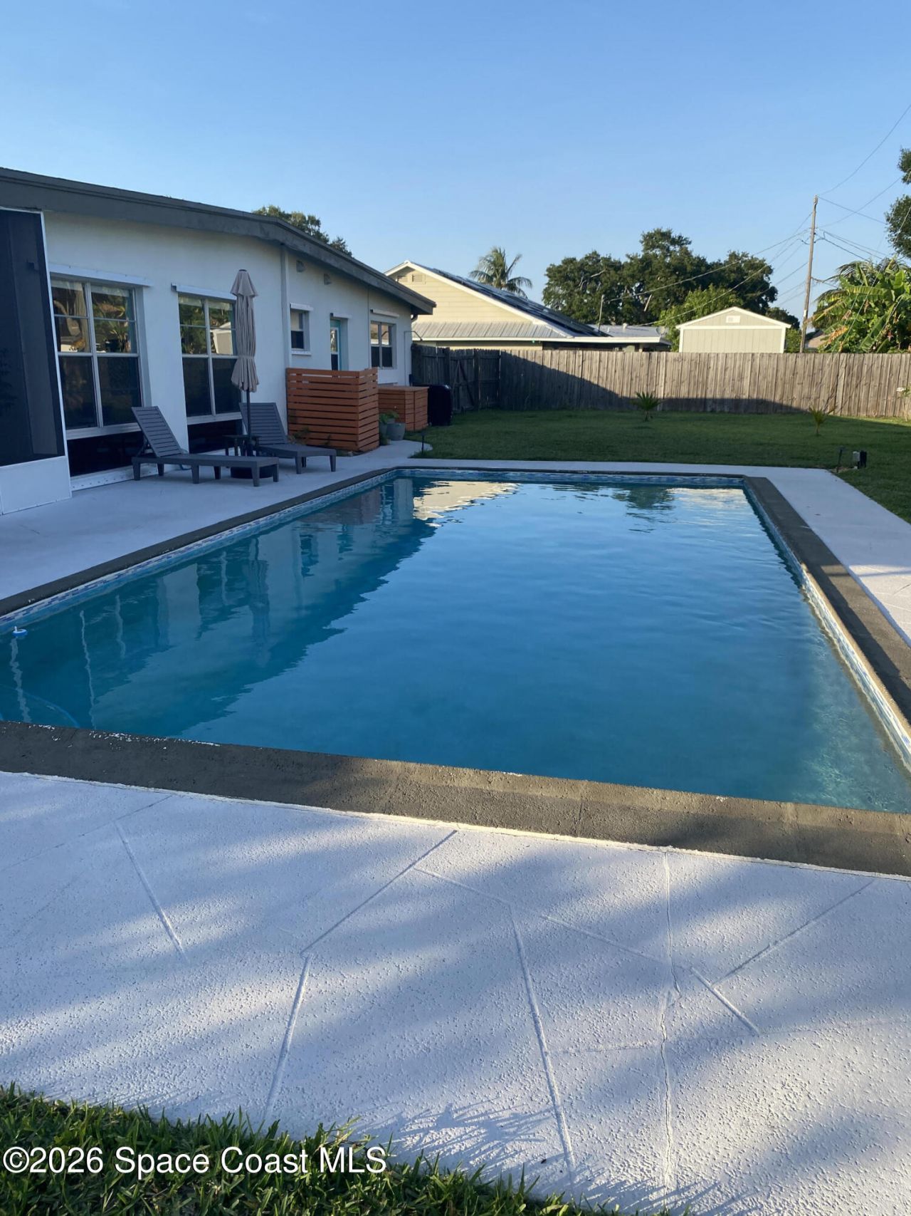 Mid-Century CBS modern home in desirable Vero Shores neighborhood with 21st-century enhancements back on the market. No HOA, no restrictions. Full hurricane protection includes shutters and custom hurricane double car garage doors.15X30 heated saltwater pool (2020heat pump, 2018energy-efficient V/S pool pump, 2024 saltwater system) Screened porch with ceiling fan overlooking large private fenced backyard. Terrazzo floors throughout, renovated kitchen: gas range, SS appliances, custom cabinets, r/o filtration, pantry, laundry room. Features high ceilings-bright airy interiors. Safe and friendly neighborhood, only five miles from the beach.(Electric updated:200amps/2020, insulated 2-car garage, 2018 Main H20 line repiped w/new shut-off valve) Located close to shopping, pharmacy, gas, and groceries. MOVE-IN ready! Rmsizeapprox.