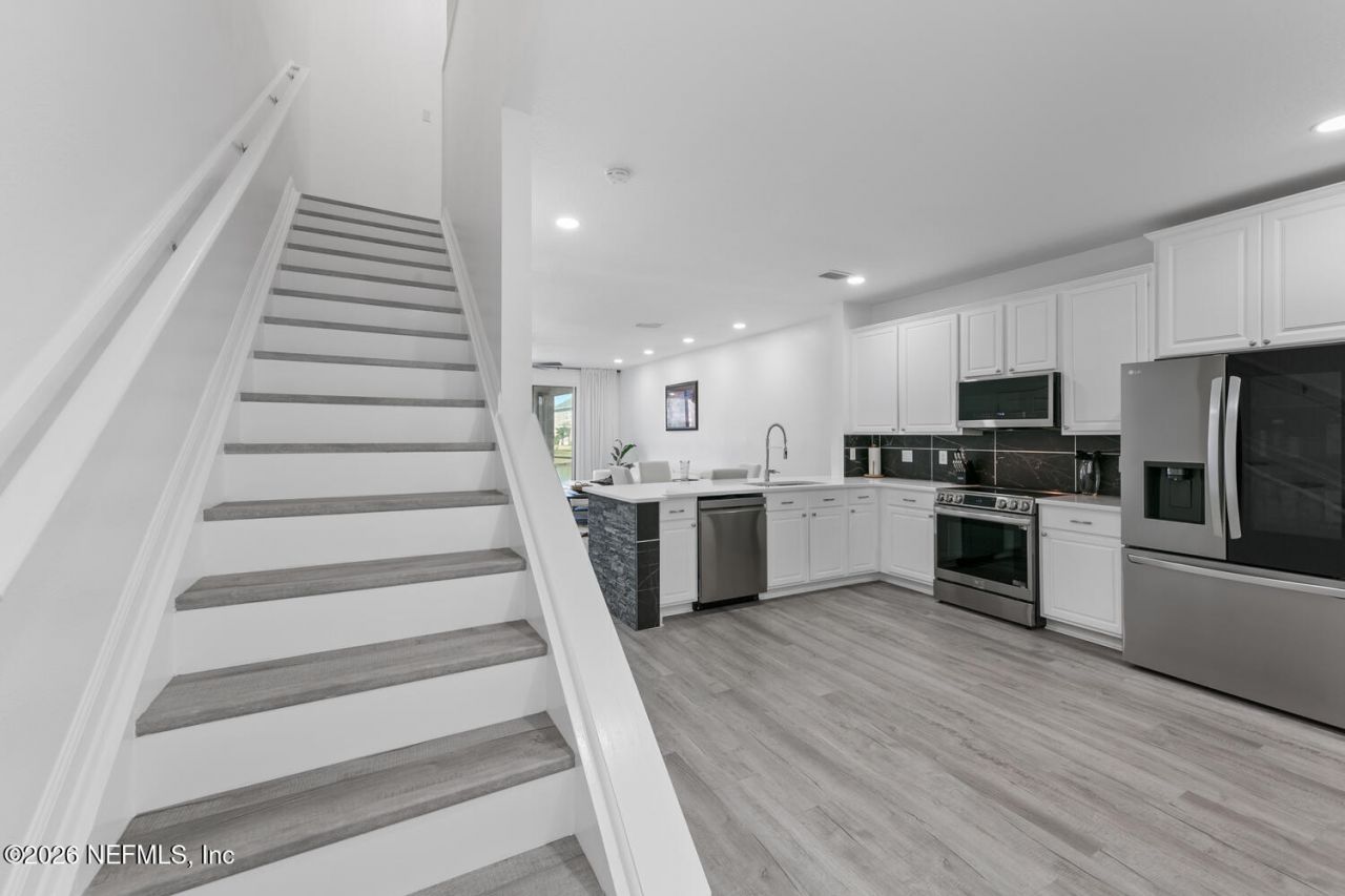 Wake up to tranquil pond views in this fully renovated 2023 townhome designed for modern, low-maintenance living. Luxury vinyl plank flooring flows throughout, complementing an open layout and updated kitchen with granite countertops and stainless steel appliances. Smart home technology enhances lighting, climate, and security. Added conveniences include a washer and dryer, a new water heater, and a water softener. Relax on your private patio overlooking the water. Located in a gated community with a pool and fitness center, HOA-covered exterior care ensures worry-free living. Minutes from Mayo Clinic and St. Johns Town Center. FHA/VA eligible and optionally furnished.