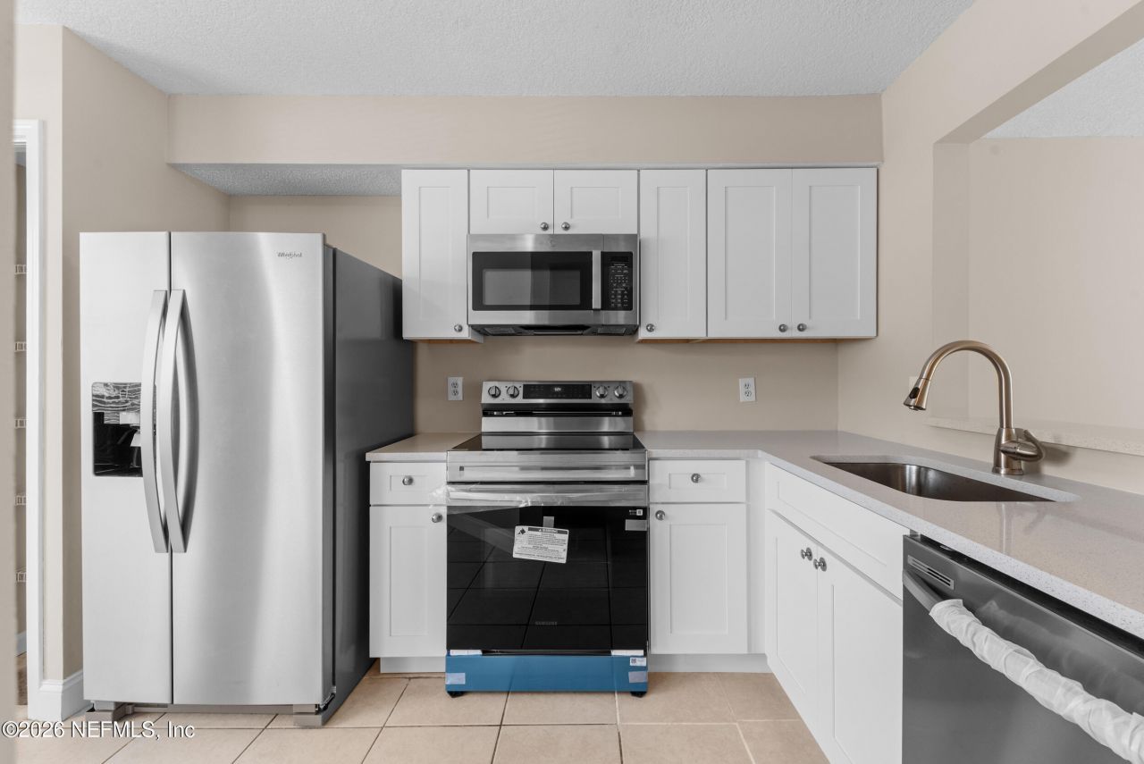 Move-in ready 2-bedroom, 2.5-bath townhome with no HOA or CDD restrictions. This home has been remodeled in 2025 with quality upgrades throughout. The exterior features new long-term composite fiber-cement siding, freshly painted, a new composite fence at the entrance, and a roof replaced in 2017. Inside, enjoy a bright and open floor plan with fresh interior paint. Living area showcases a brick wood-burning corner fireplace, sliding glass doors for natural light, and direct access to a private fenced backyard and patio great for entertainment. The fully updated kitchen includes new cabinets, granite countertops, modern sink and faucet, and brand-new stainless steel appliances-two-door refrigerator, self-cleaning stove, microwave, and dishwasher, installed in 2025. A convenient laundry hookup and updated half bath complete the main level. Upstairs, both bedrooms feature vaulted ceiling. Additional upgrades include a new water heater (2025) and updated bathrooms. Near Blue Cypress Park
