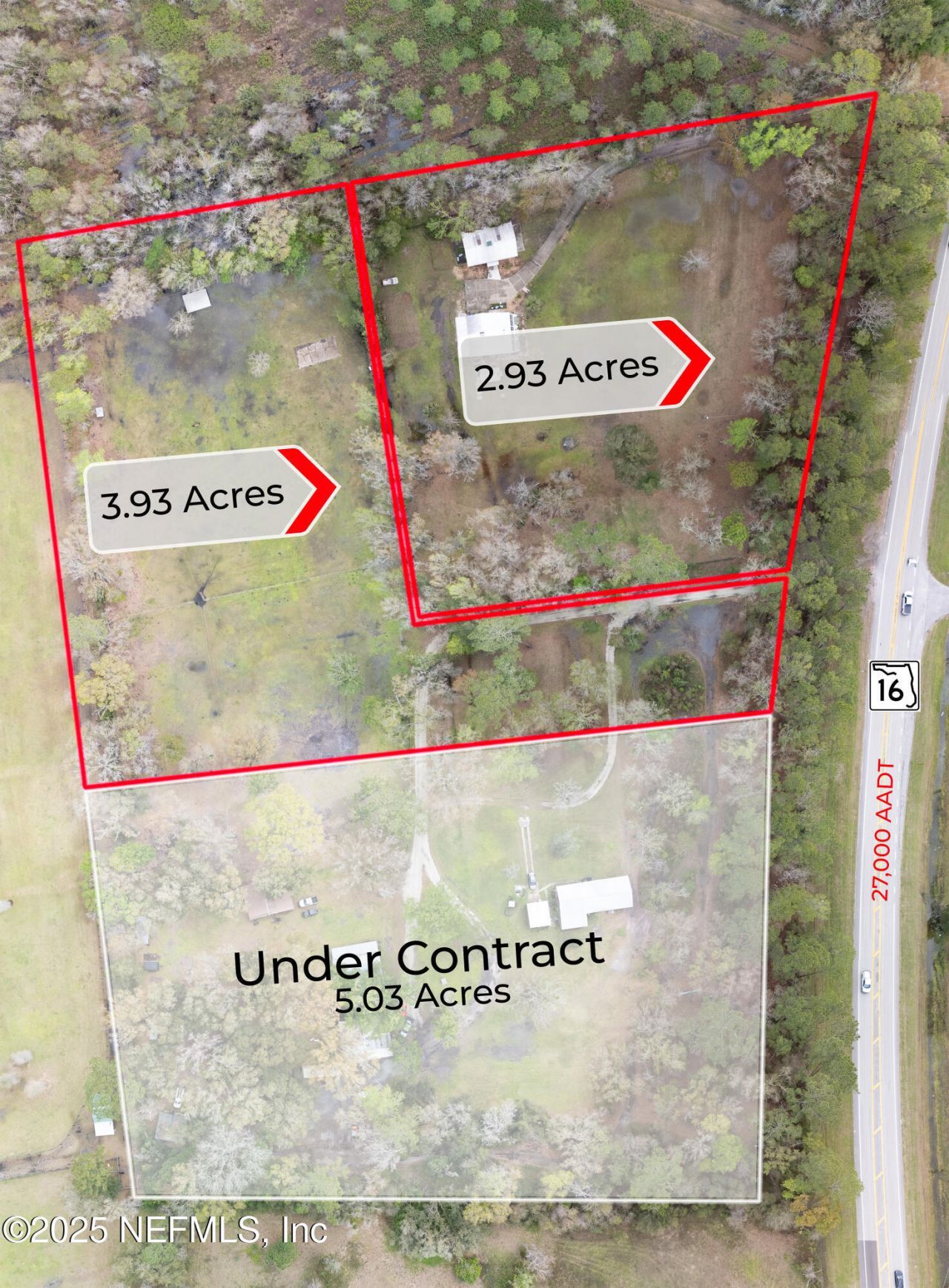 Excellent development opportunity along State Road 16 in St. Augustine, Florida, totaling 6.86+ acres (2.93+ and 3.93+ acres) across parcels 0286220000, 0286210000, and 0286200000. The property offers approximately 520 feet of frontage along SR 16, providing exceptional visibility and access with an average daily traffic count of 20,500 vehicles. Roadway improvements are underway in the area, with the expansion of SR 16 approved to widen from two lanes to four lanes, and a new traffic light already installed at the nearby intersection of SR 16 and S. Francis Road. Zoned Open Rural (OR), the site includes a single-family home and is mostly cleared and ready for development. Located just five miles from the St. Augustine Premium Outlets, this property benefits from strong traffic volume, convenient access, and proximity to one of the area's fastest-growing commercial corridors.