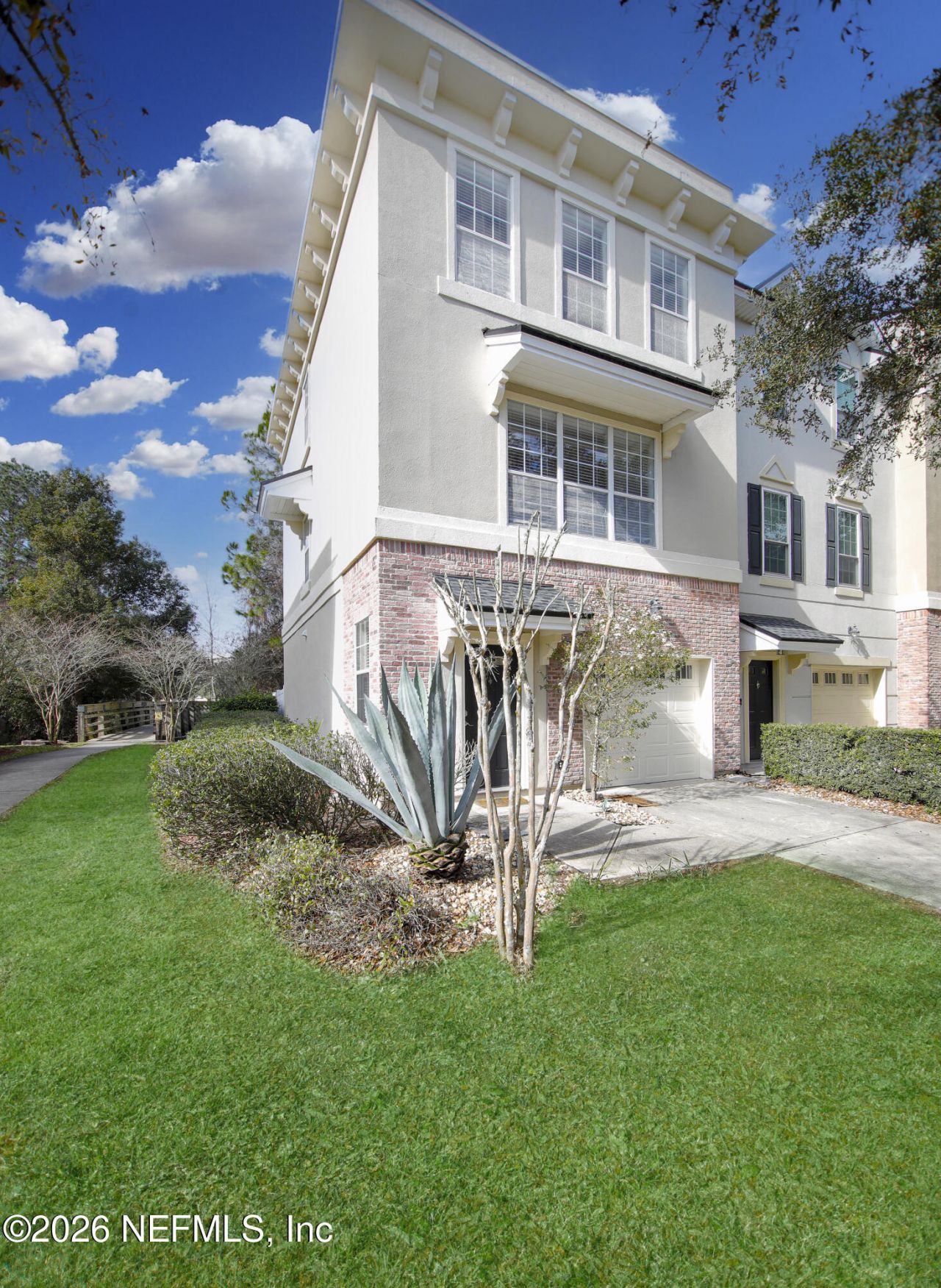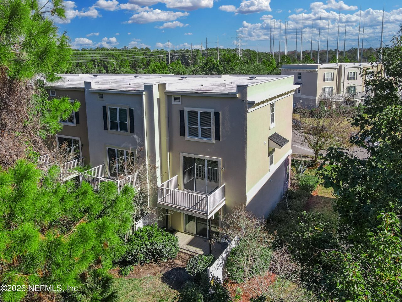 Fully renovated end-unit townhome located in the exclusive gated community of Georgetown at St. Johns Town Center. This spacious and luxurious 3-story end unit is within walking distance to Publix and the St. Johns Town Center mall, and conveniently located near the beaches, UNF, major interstates, NS Mayport, NAS Jax, Costco, and IKEA.The second floor features an open floor plan with a gourmet, eat-in kitchen offering new granite countertops, freshly painted cabinets, 42'' cabinetry, new tile flooring, new single-compartment sink, new dishwasher, and new microwave. The kitchen opens to a wooden deck balcony overlooking a wooded preserve and flows into a spacious living and dining area with new wood laminate flooring and a new ceiling fan, plus a half bath.The third floor offers two suites, including a primary suite and a second bedroom. All bathrooms have new tile flooring and new toilets, and the upper-level bathrooms also feature new granite countertops, freshly painted cabinets, and new wood flooring in closets. The laundry area includes new doors and tile flooring.The first floor guest suite features double French doors, sliding glass doors to a private patio, a half bath, and new tile flooring, along with an updated foyer and powder room. Additional upgrades include new wood staircases to the 2nd and 3rd floors, wood flooring on the 2nd and 3rd floors, ceramic tile on the first floor, and fresh interior paint throughout.Beautifully updated and move-in ready, this home offers luxury living in one of Jacksonville's most desirable locations.