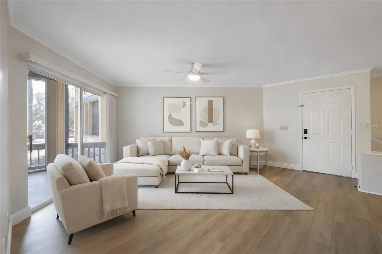 One or more photo(s) has been virtually staged. **Seller may consider buyer concessions if made in an offer**Welcome to this beautifully UPDATED and MOVE-IN READY 2-bedroom, 1-bath GROUND-FLOOR CONDO in the desirable Windsor at Sabal Walk community in Longwood. Offering comfort, style, and convenience, this charming home is perfect for those seeking low-maintenance living in a PRIME LOCATION. Step inside to discover a bright, OPEN FLOOR PLAN where the Kitchen, Dining, and Living areas flow seamlessly together-ideal for both everyday living and entertaining. Recent 2024 UPGRADES include a BRAND-NEW AC system, stunning WOOD-LOOK VINYL PLANK FLOORING throughout, UPDATED HARDWARE, and MODERN LIGHTING FIXTURES, creating a fresh and contemporary feel from the moment you enter. The spacious Living Room features sliding glass doors that open to a private screened rear patio overlooking PEACEFUL GREEN SPACE-an inviting spot for morning coffee or unwinding in the evenings. The patio also includes a CONVENIENT STORAGE CLOSET for added functionality. The Kitchen is both stylish and practical, showcasing GRANITE COUNTERTOPS, stainless steel appliances, a sleek tile backsplash, closet pantry, and a breakfast bar for casual dining. The UNIQUELY-SHAPED Primary Bedroom offers character and comfort, complete with a generous walk-in closet featuring a CUSTOM CLOSET SYSTEM and private access to the full bathroom that includes a granite vanity and a tub/shower combination. The second Bedroom is equally inviting and features its own SLIDING DOORS leading directly to the screened patio, allowing for natural light and easy outdoor access. A hallway laundry closet with WASHER AND DRYER INCLUDED, adds everyday convenience. The HOA has recently enhanced the community by REPAIRING AND REPAINTING the exterior of all buildings, REPAVING the entire community, and REPLACING the pool deck-adding to the already well-maintained appeal. HOA FEES cover water, trash, lawn care, exterior maintenance, and access to the SPARKLING COMMUNITY POOL, making for truly carefree living. Located within a TOP-RATED school district and JUST MINUTES from Altamonte Mall, Cranes Roost Park, Wekiva Island, and Wekiwa Springs State Park, this condo offers EASY ACCESS to shopping, dining, entertainment, outdoor recreation, and YEAR-ROUND COMMUNITY EVENTS. Nearby hospitals, grocery stores, and local restaurants add everyday convenience, while QUICK ACCESS to I-4 makes commuting to Orlando, Lake Mary, or the beaches simple and efficient. This is an EXCEPTIONAL OPPORTUNITY to own an updated, ground-floor condo in a beautifully refreshed community in one of Longwood's most convenient locations. Schedule your showing today!