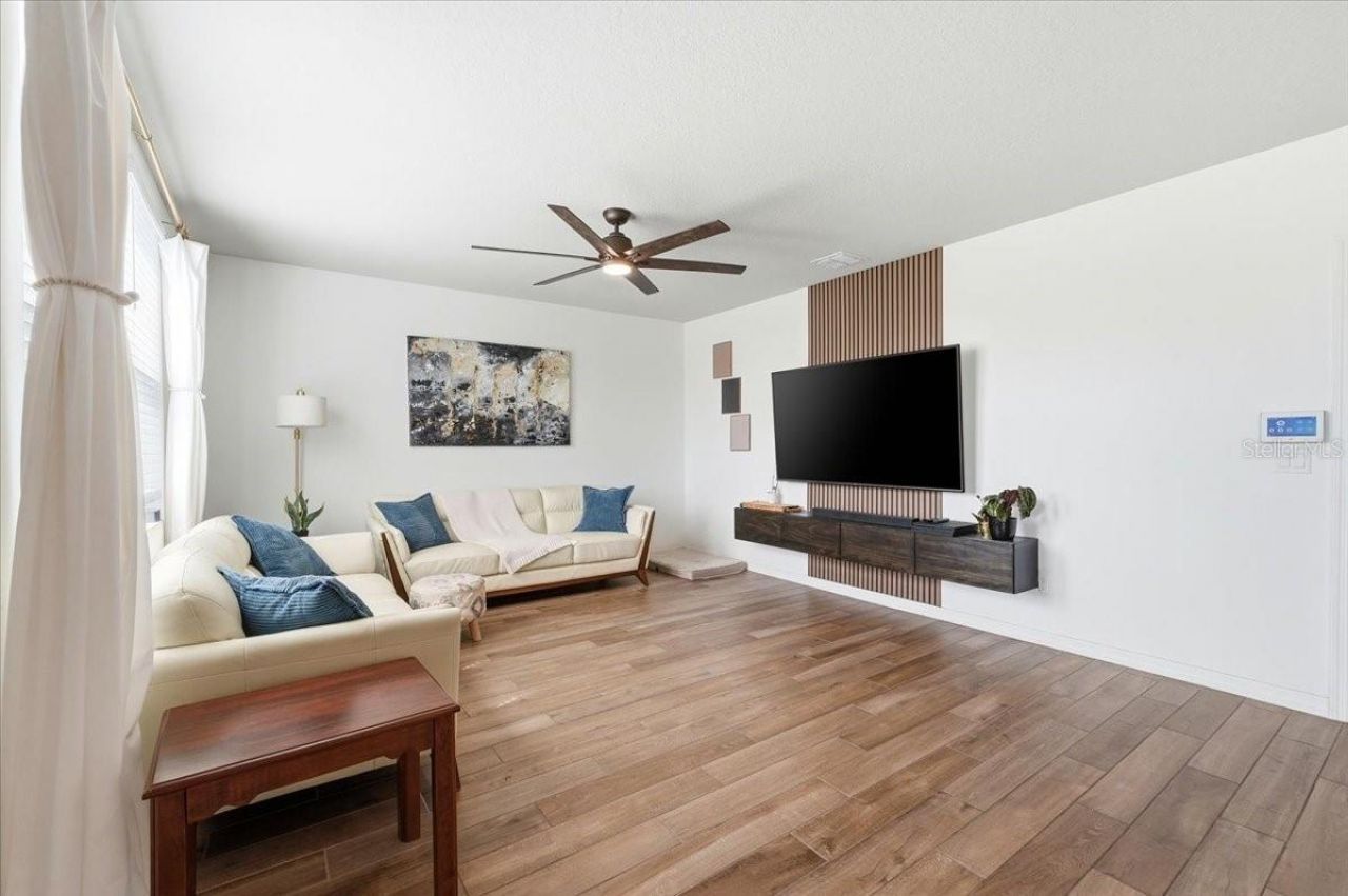 Some homes have a backyard. This one has a lifestyle. Tucked inside a sought-after St. Cloud community just minutes from Lake Nona and Medical City, this stunning 4-bedroom, 3-bathroom home sits on a premium lot with serene water views, no rear neighbors, and a generously sized yard that delivers the privacy and breathing room nearly impossible to find in today's Central Florida market. Step outside onto the extended covered patio, a true outdoor living room with upgraded concrete flooring and a full roof covering where weekends mean hosting, unwinding, and watching the sun set over the water from your own backyard. Inside, the upgrades continue throughout, with an open-concept kitchen featuring quartz countertops that flows effortlessly into the main living and dining spaces, the kind of layout where family life just works, whether it's a quiet Tuesday night or a house full of guests. Upstairs, a sunlit loft opens up endless possibilities as a playroom, media room, or creative retreat, while the primary suite serves as a genuine sanctuary with a generous walk-in closet and double-vanity en suite bath. Three additional well-sized bedrooms provide comfortable space for everyone under the roof. Built with energy-efficient construction that keeps utility costs low year-round, residents enjoy a community pool, cabana, park, and tot lot just steps away - all within minutes of the dining, retail, and major employment centers along the Narcoossee Road corridor. Homes with this view, this yard, and these upgrades in St. Cloud don't come along often, this is the one.