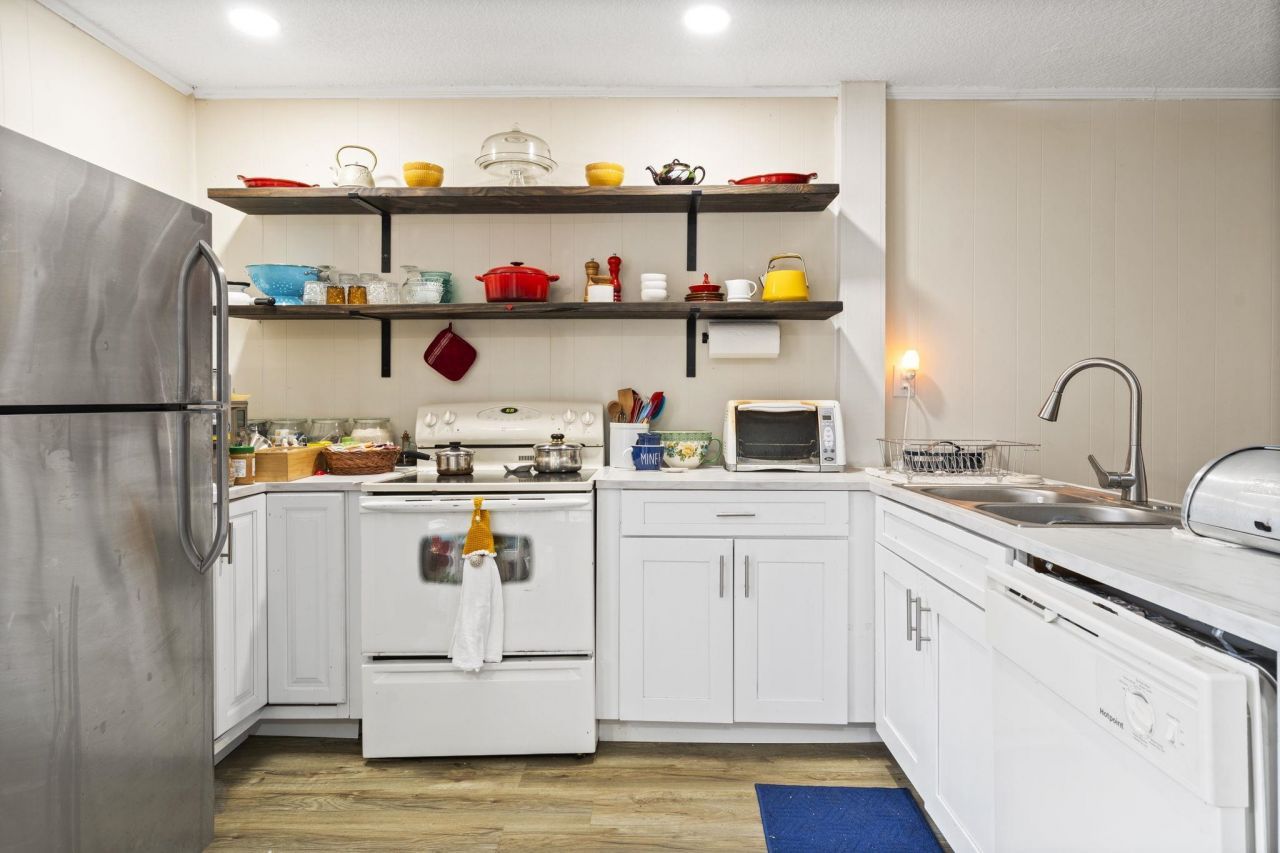 Discover a rare opportunity for multigenerational living on a sprawling double corner lot in the heart of Orange Park. This in-law suite design includes a split floor plan creating a two bedroom suite on one side of the house and a one bedroom suite on the other each with their own dedicated kitchen and living space. Two garages optimize the available storage of this property and the laundry unit is located in the attached garage to allow equal access. Enjoy the best of Orange Park living. You are just moments away from the heart of town filled with small businesses, coffee shops, major grocery stores and scenic walks along the riverfront.