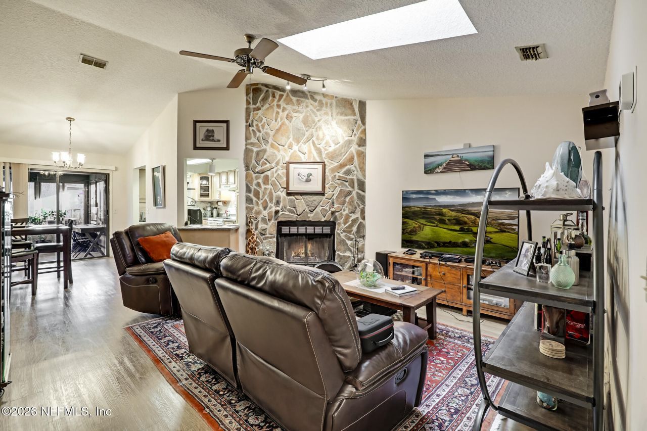 **LARGE LOT**NEW ROOF**UPDATED** This charming duplex serves as a great starter, or low maintenance home, offering significant peace of mind with a NEW ROOF installed in 2024 featuring a 5 year warranty. The property boasts a large front yard and a FENCED BACKYARD on a large lot. Upon entry, you'll be greeted with a spacious living room that boasts a beautiful stone FIREPLACE, and a vaulted ceiling with a skylight. Large UPDATED WINDOWS allow for lots of window light, creating a bright and welcoming atmosphere throughout the home. The interior has been refreshed with a new hot water heater, UPDATED FLOORING, and the kitchen features updated cabinetry, NEW APPLIANCES and a convenient breakfast bar. One of the standout features is the NEW SUNROOM, providing a perfect spot to relax and enjoy views of outdoors. The master suite has a walk-in closet, plus its own entrance into the sunroom for added privacy and convenience. This home is truly move-in ready and waiting for its new owners!