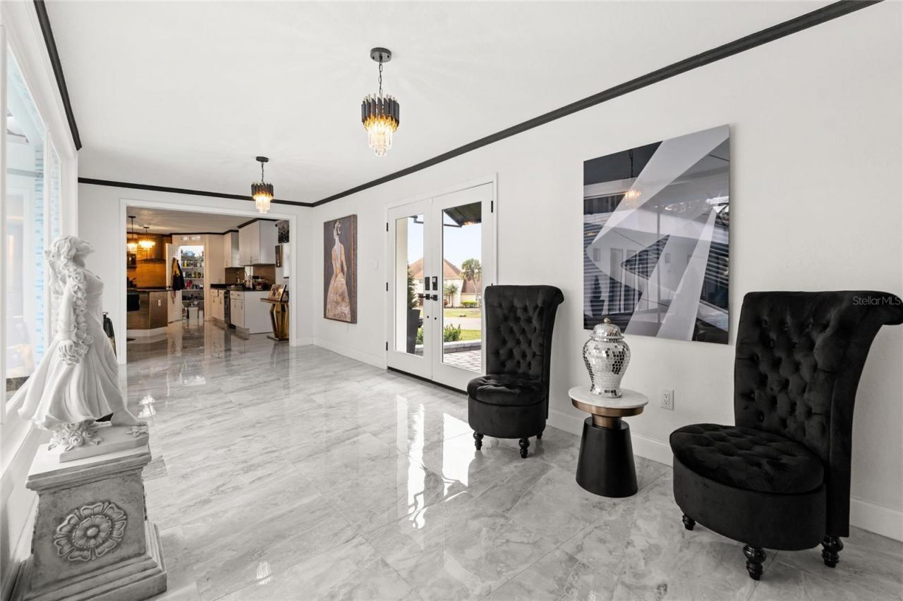 Welcome to Bay Hill, a completely renovated home, new roof, AC, new kitchen cabinets with quartz counters, charcoal appliances, touchless faucet, all four bathrooms new tile, vanities, faucets, toilets. New Windows, doors, custom gutter system, very generous landscaping professionally done. New sprinkler system, new horshoe brick paver driveway extending to rear of home, pavers include kitchen patio and rear open and covered patio with summer kitchen, paint inside and out, very high end ceramic tile in living areas and bathrooms with laminate flooring in bedrooms. Home features a seperate laundry room. The pool is located in the center of the home with a partial new screened roof, new pool equipment, pool has been resurfaced, matching brick pavers for pool deck, Ring door bell and security system. New fans and lighting throughout, tankless hot water tank, new electrical panels, new garage built last year. Furniture can sold as part of the home or seperately. All these renovations have been done in the last 18/mo. Minuites away from Sandlake's restaurant row, Disney, Universal Studios, major thoroughfares and top rated schools. Measurements are believed to be correct but not guaranteed. Contact realtor for viewing instructions.
