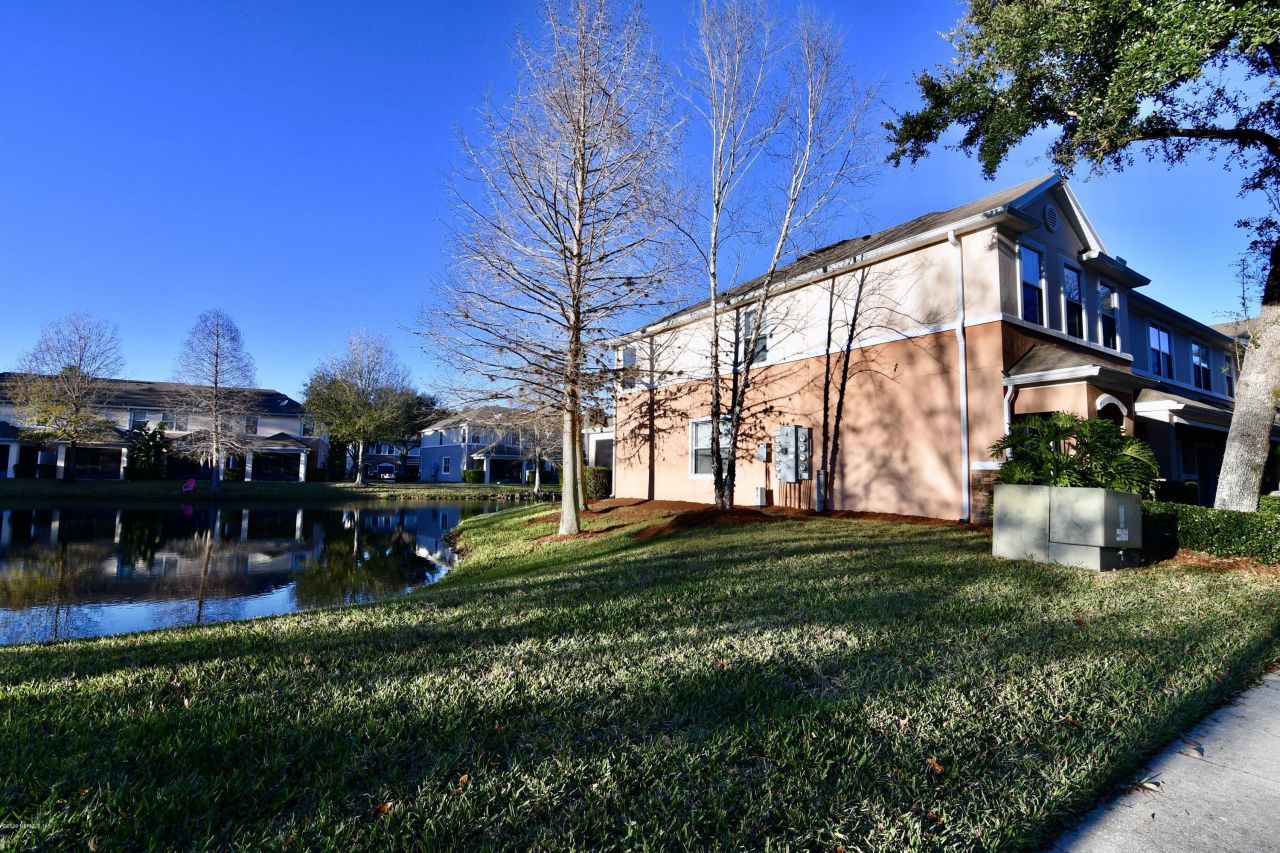 $5,000 Seller Flooring Allowance. Welcome to the smartest buy in Emerald Preserve. While other townhomes offer just a place to sleep, this rare End Unit offers a complete lifestyle upgrade with privacy, views, and unmatched convenience. Situated on a premium waterfront lot, you will enjoy mornings on your screened lanai overlooking a peaceful pond--not a neighbor's wall. Inside, the home is filled with natural light and features a low-maintenance mix of ceramic tile and wood-look flooring downstairs.The standout feature that sets this home apart is the location. In a gated community where street parking is prohibited, this unit is positioned directly across from a designated guest parking bay. Having these spots at your doorstep makes hosting friends and family stress-free compared to other locations in the neighborhood.🌟 Why This Unit Wins:The View: Premium lot placement with direct, unobstructed pond views from your screened lanai. The Privacy: Being an End Unit means just one shared wall, more windows.and extra green space.The Layout: 2BR/2.5BA + LOFT. The upstairs features a flexible loft space perfect for a home office, gym, or media nook.The Kitchen: Equipped with 42 maple cabinetry, a breakfast bar that flows into the dining area.New HVAC System installed approximately May 3, 2024.The Garage: 1-car garage features a pristine, painted floor clean enough to be a home gym!Association replaced roofs approximately three years ago which should help with acquiring affordable insurance compared with other communities later in the CapEx replacement life cycle.Resort-Style Living: Enjoy full access to the sparkling community pool and on-site fitness center.Located in the heart of Bartram Park, you are minutes from the rapidly expanding Durbin Park Pavilion, offering endless dining, shopping, and entertainment options. Move-in ready and waiting for you schedule your tour today!