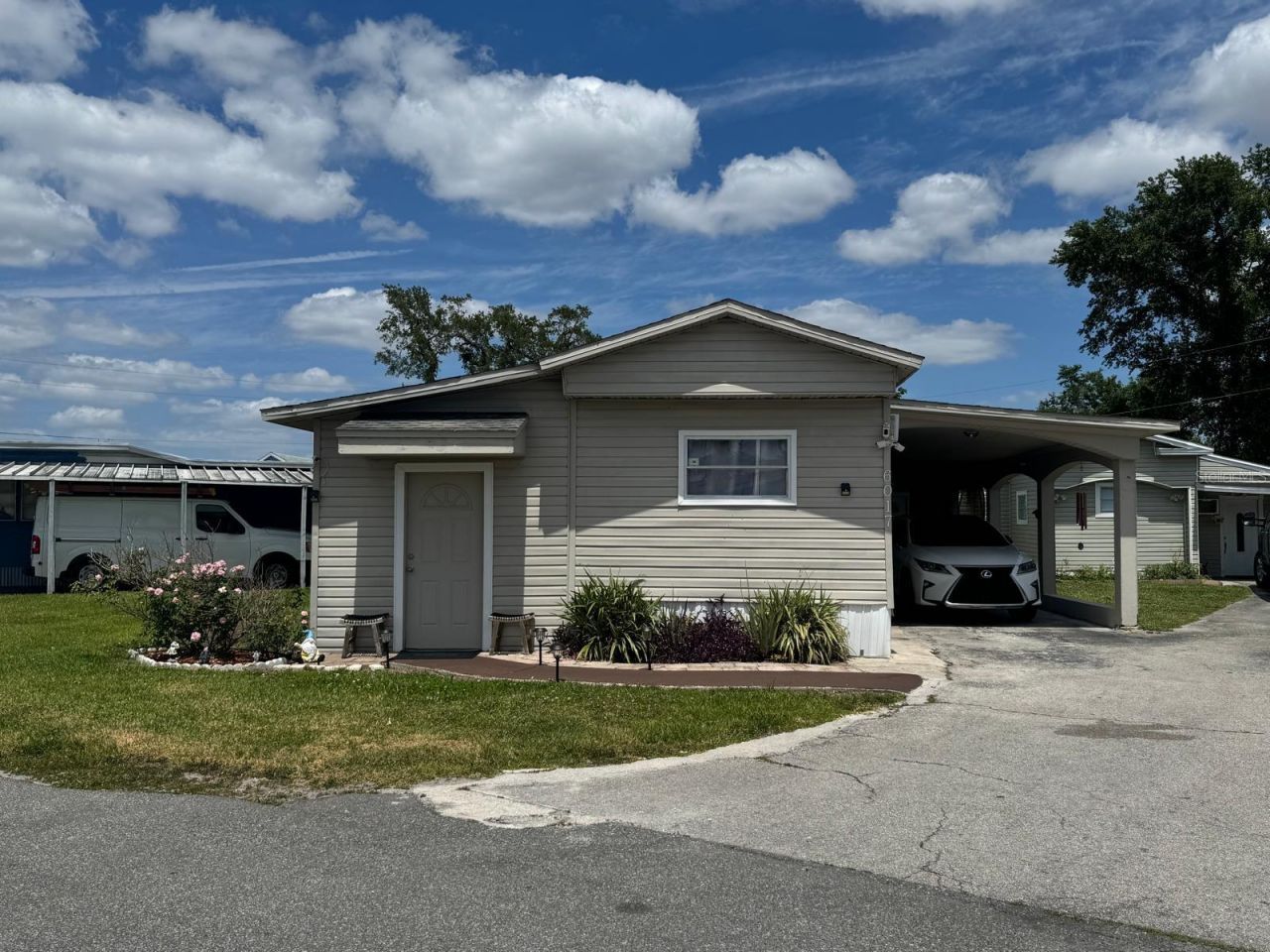 beautiful, three bedroom and two-bathroom SINGLE WIDE mobile home with room added. It is perfect for a small family! spacious living/dining room area, laundry room and marquesina a carport that allows up to three cars. All ages welcome! pool amenities, club house, close to major highways, stores, Disney and so much more! Schedule your private tour today!